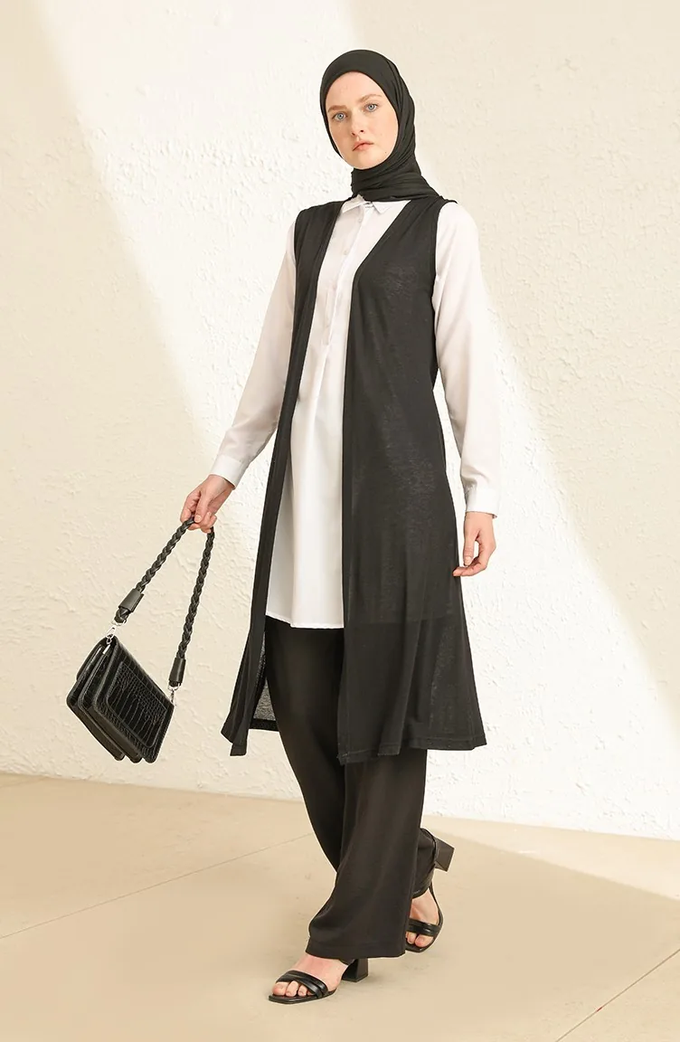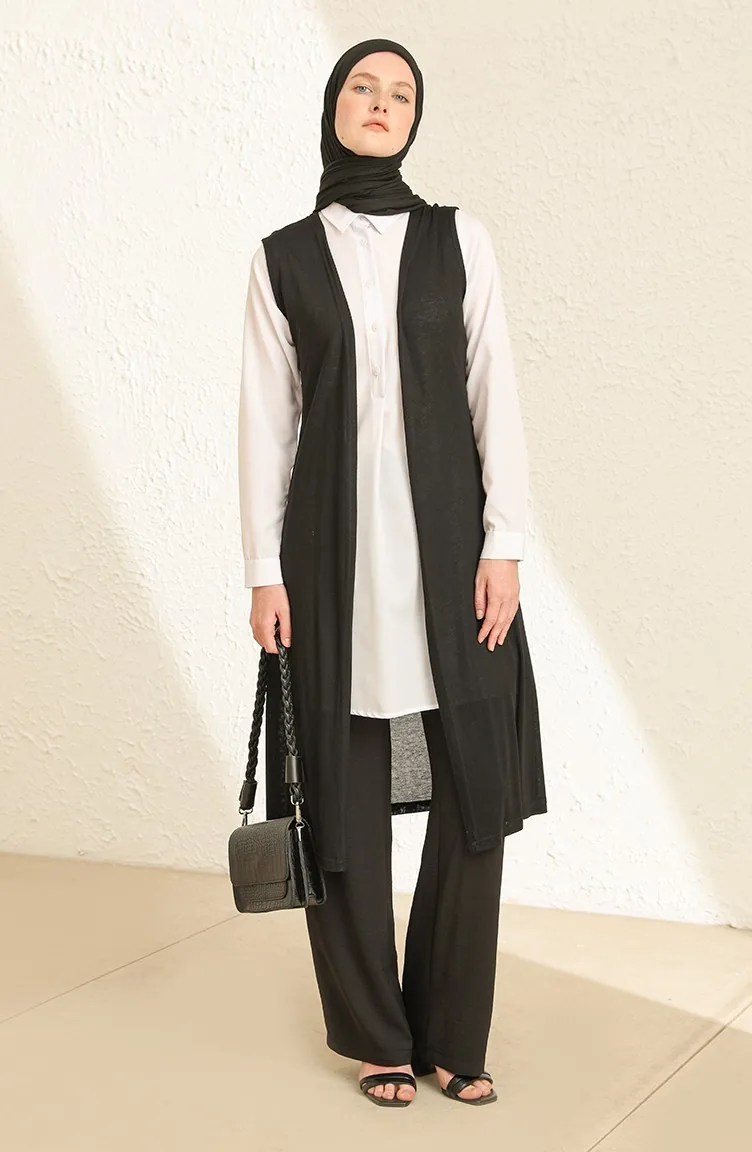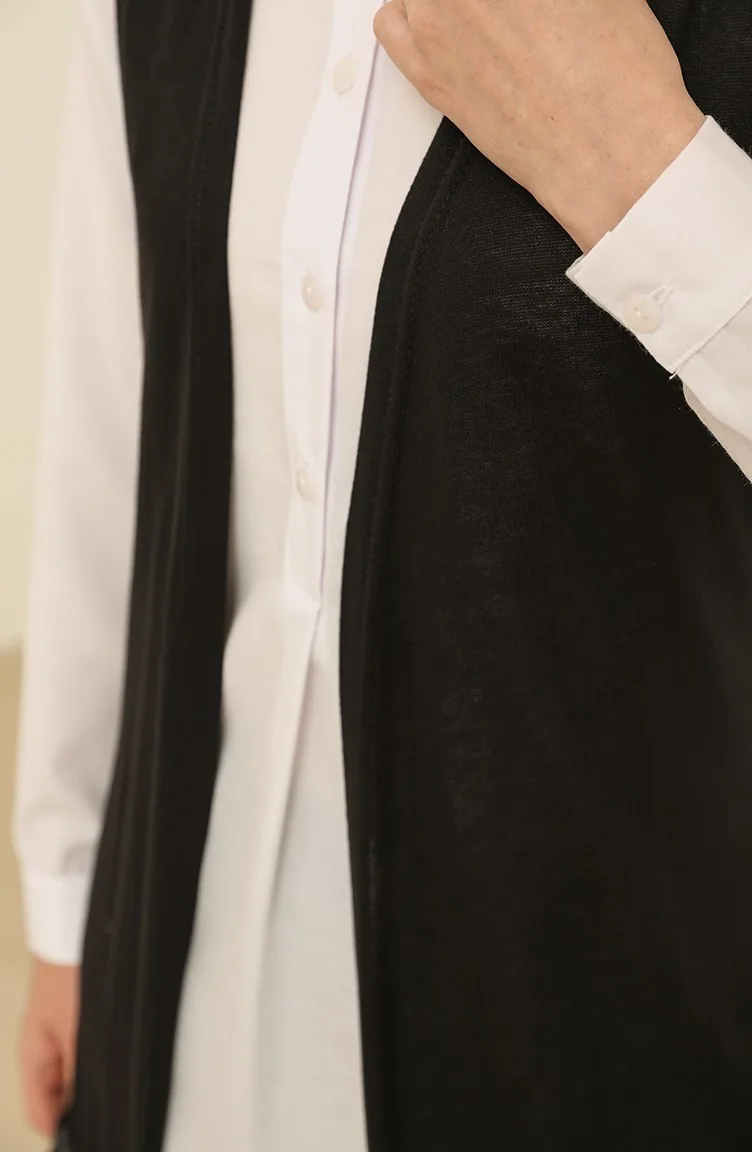 Effen Dun Basic Lang Vest Plus Size Vest Hijab Vest 8765-01 Zwart 8765-01