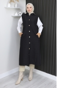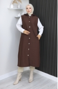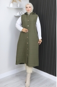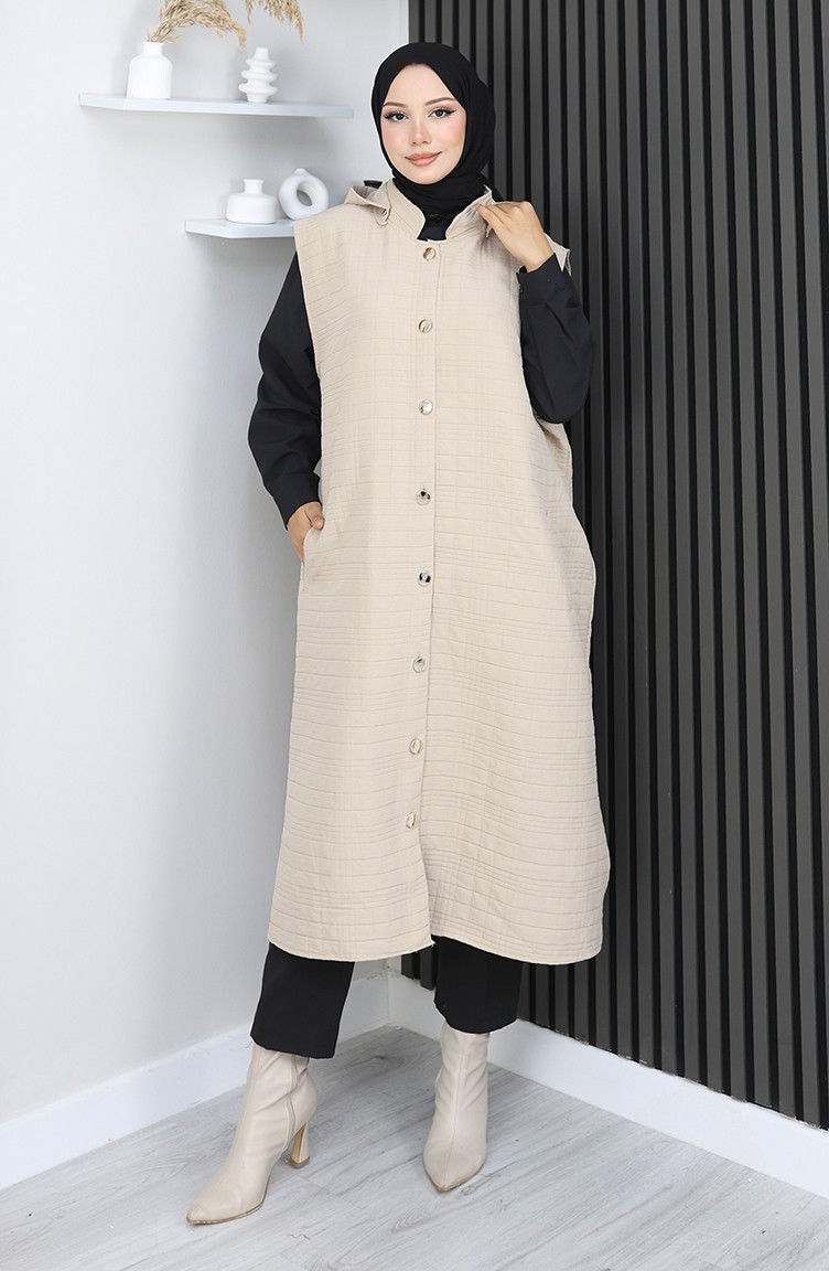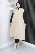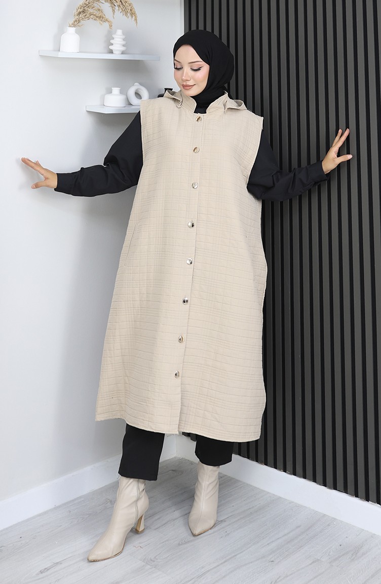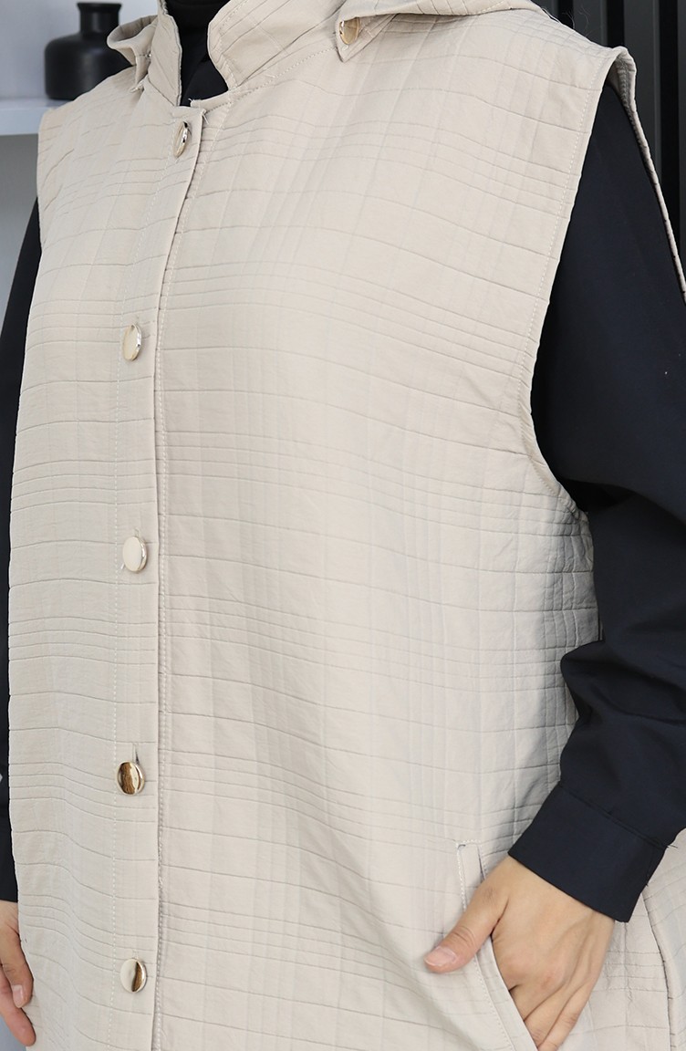 Gewatteerd Stoffen Vest Met Knopen 0186A-03 Beige 0186A-03