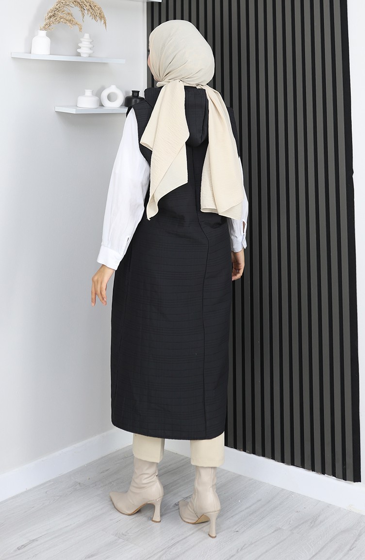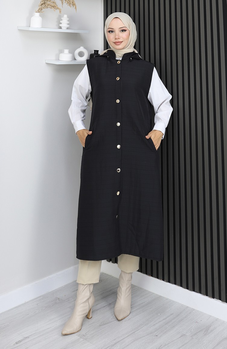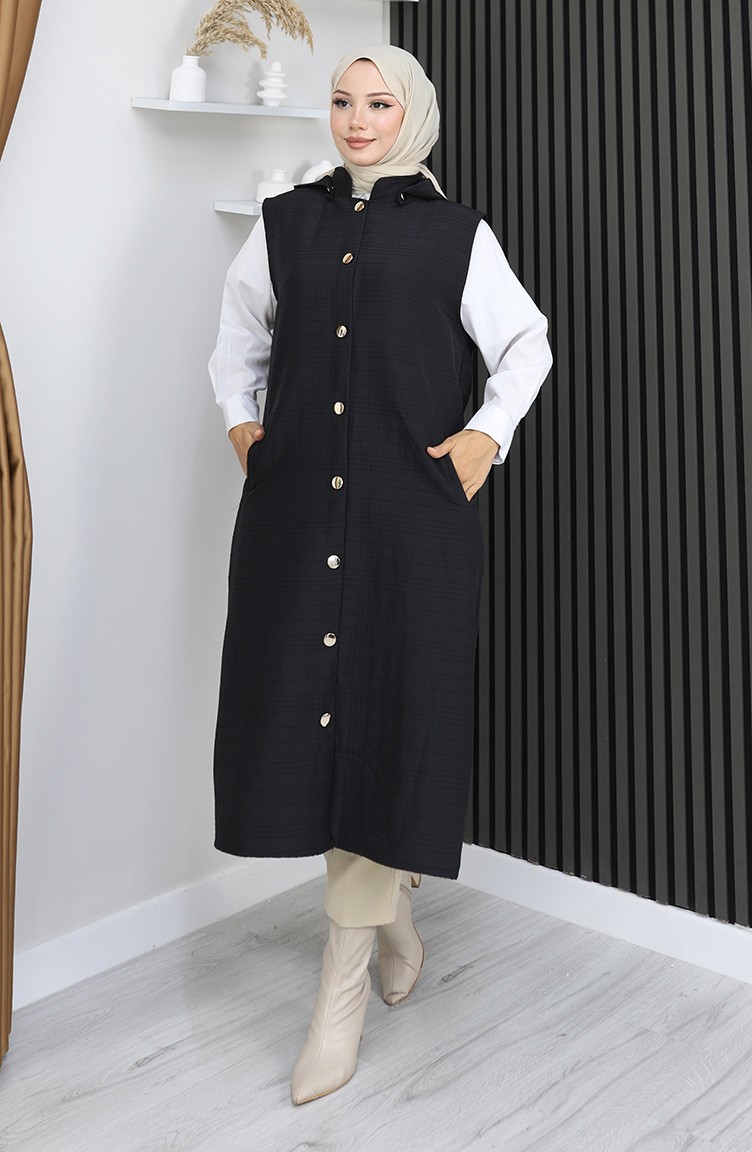 Gewatteerd Stoffen Vest Met Knopen 0186A-05 Zwart 0186A-05