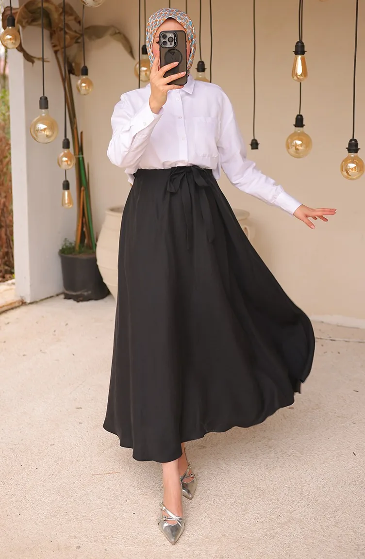 Black color is used. Polyester fabric often prevents wrinkling. It has a plain appearance. Suitable for 4 seasons. The size worn by the model, is the one on the image.
