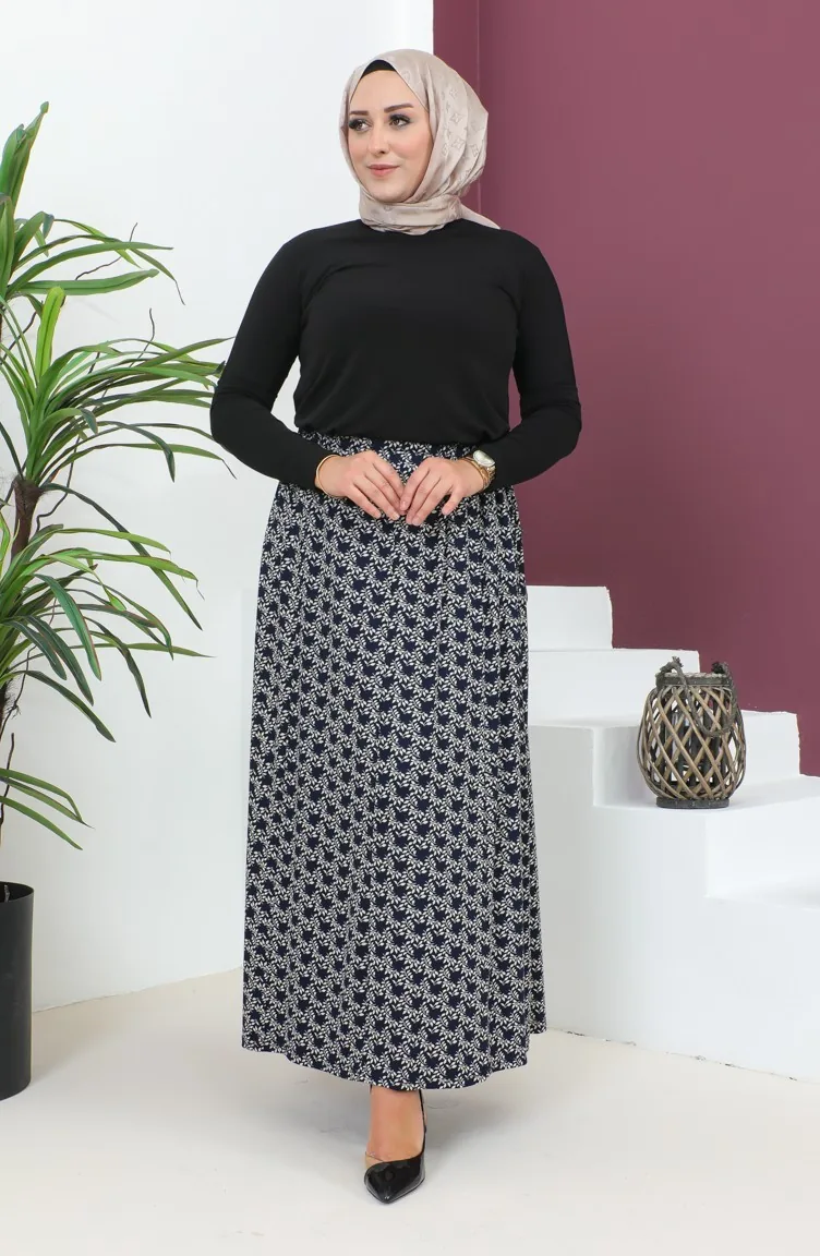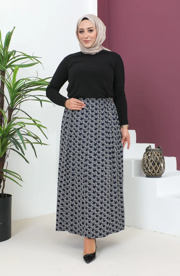Plus Size Pieced Viscose Rok 4360C-01 Marineblauw 4360C-01