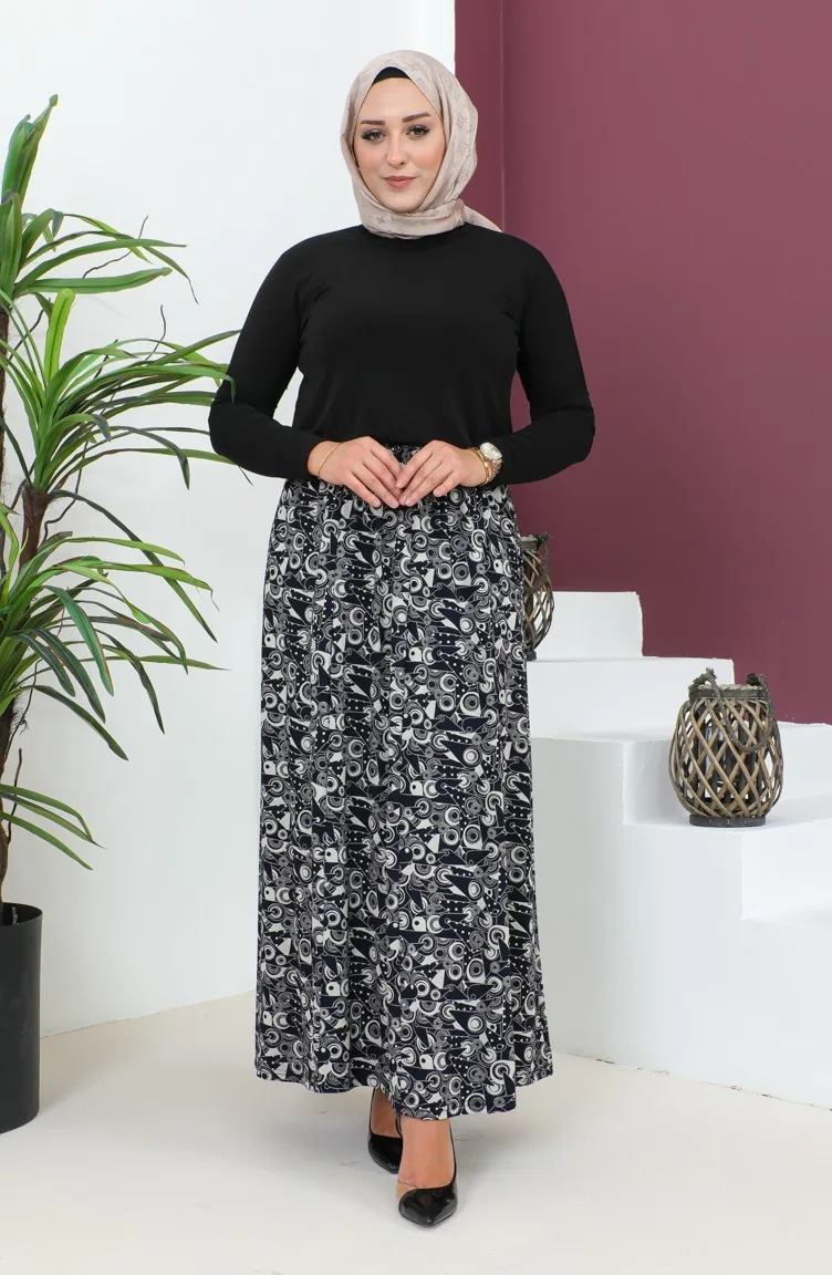 Plus Size Pieced Viscose Rok 4360E-01 Marineblauw 4360E-01