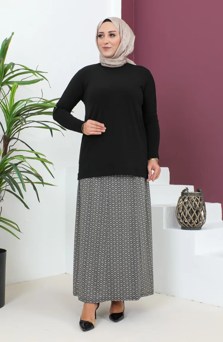 Plus Size Pieced Viscose Rok 4360H-02 Zwart 4360H-02