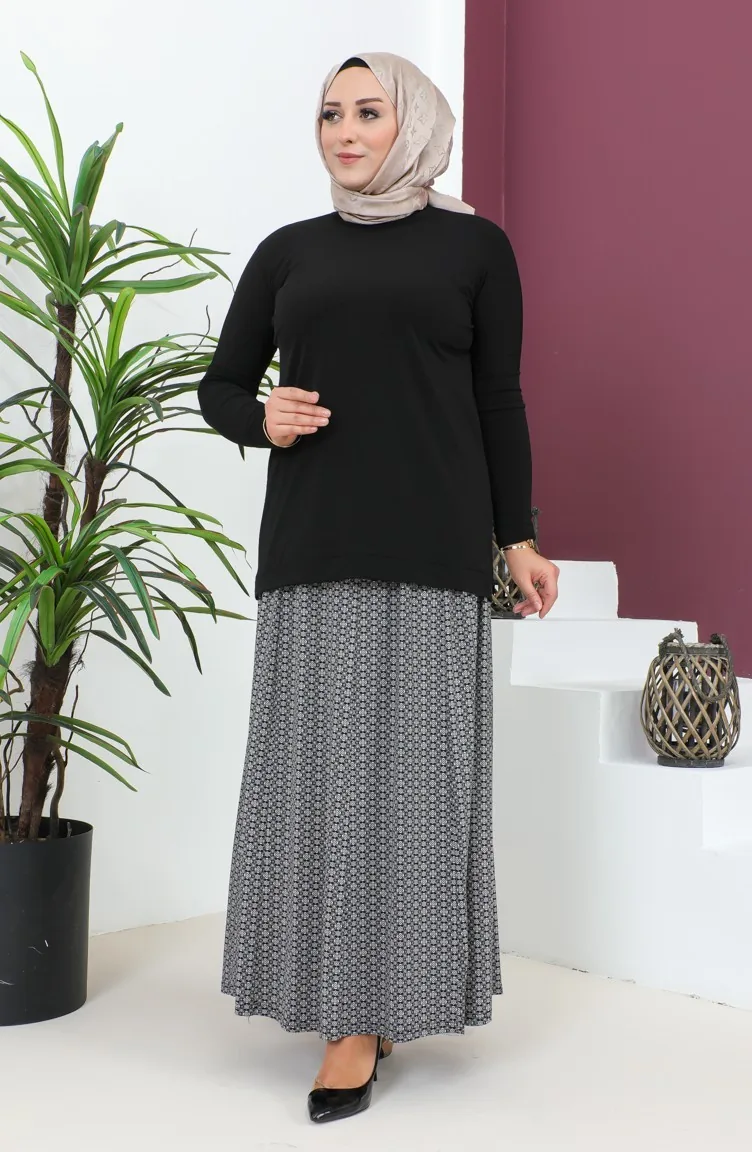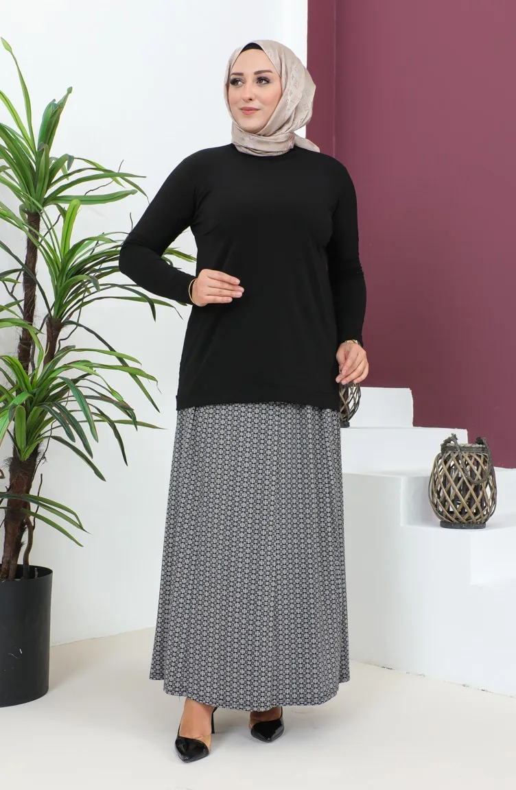 Plus-size Viscose Rok Met Stukjes 4360H-01 Marineblauw 4360H-01