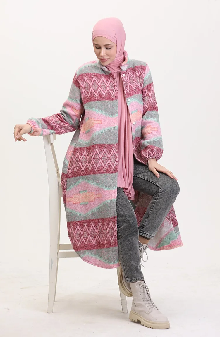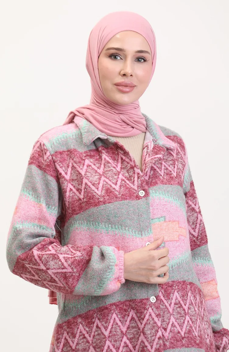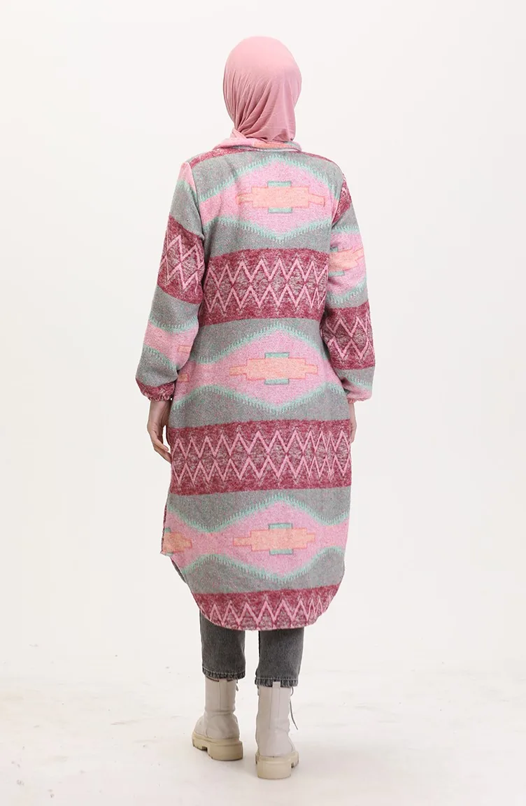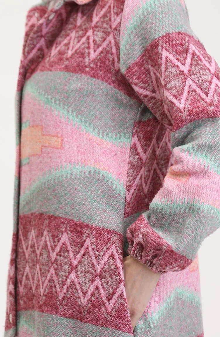 Etnisch Patroon Geknoopte Cape 0557-04 Roze Groen 0557-04