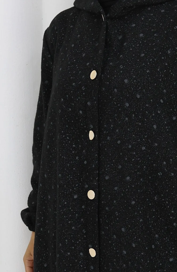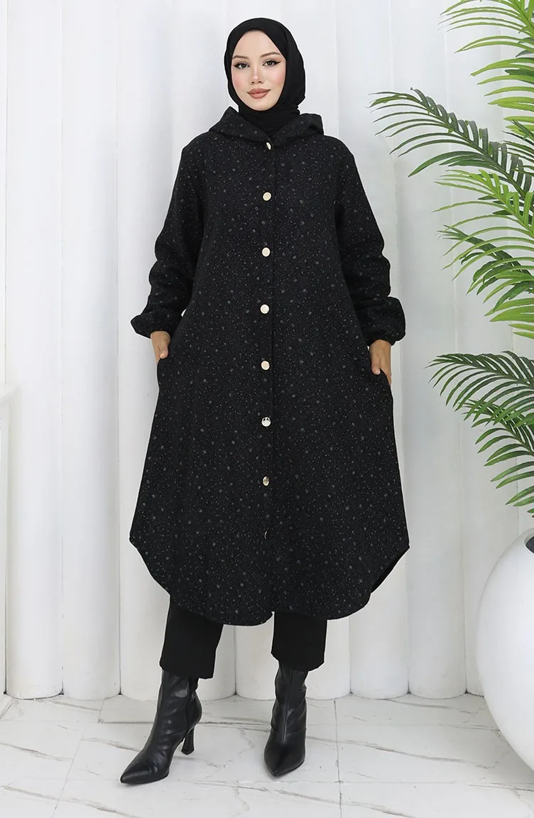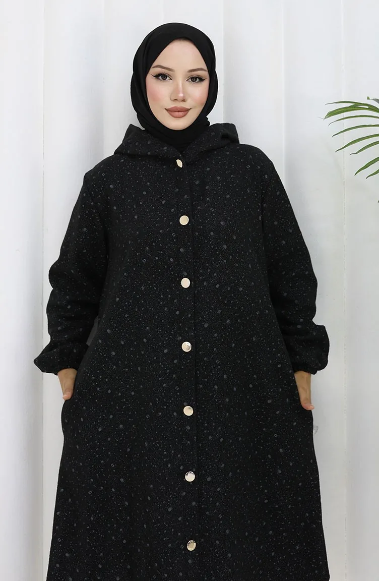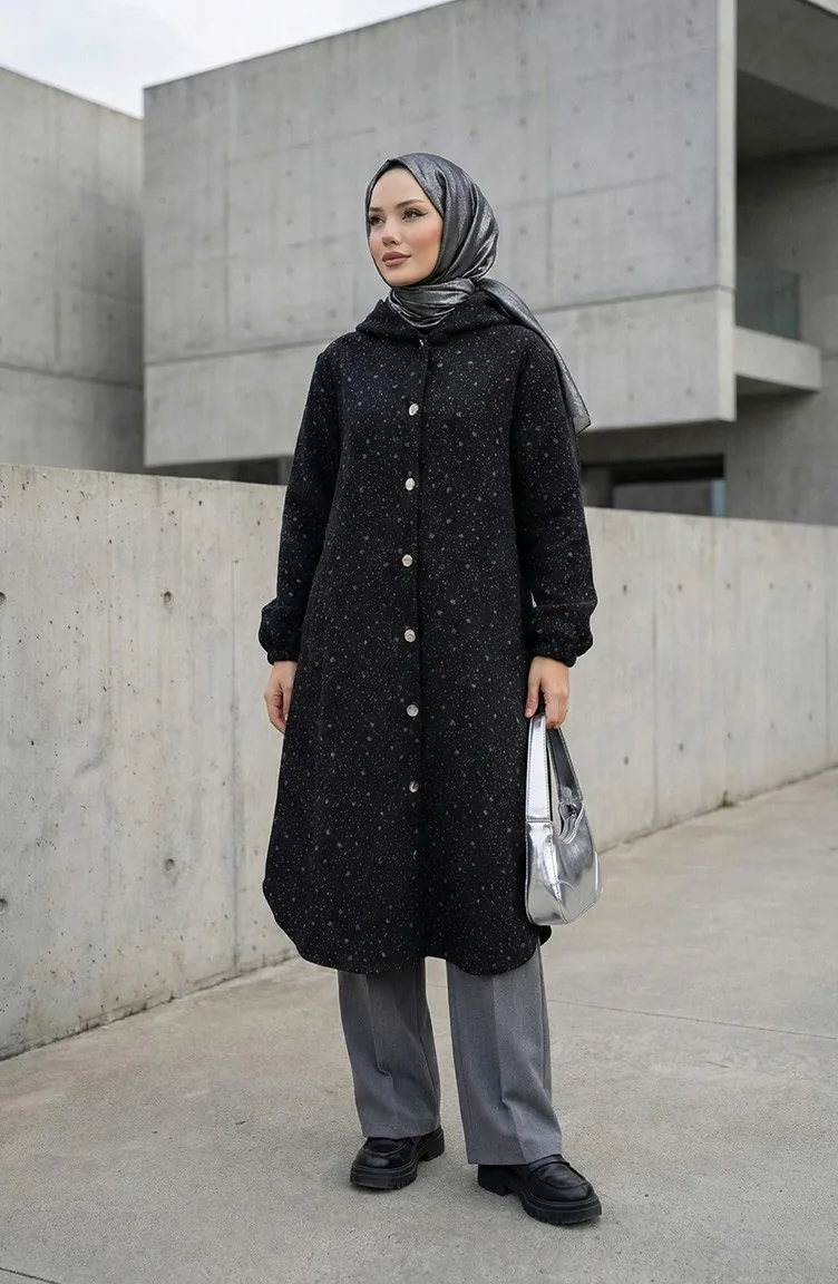 Kasjmier Jas Met Druppelpatroon En Capuchon 0187B-02 Zwartgrijs 0187B-02
