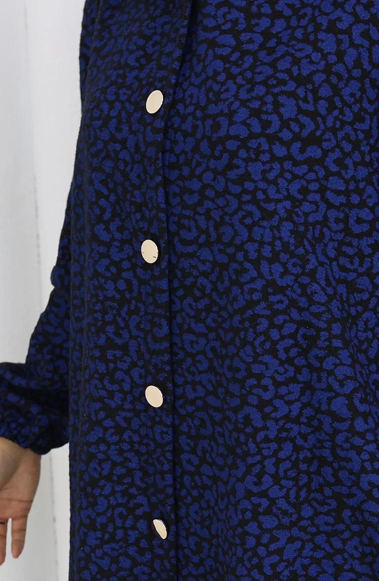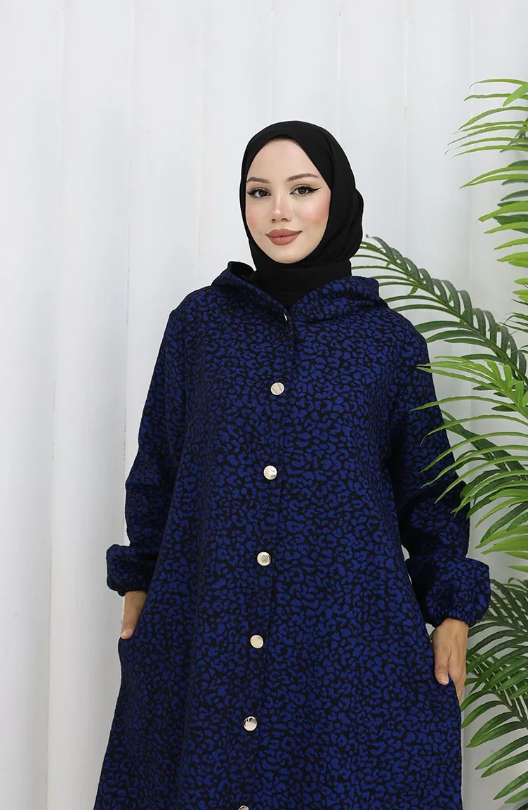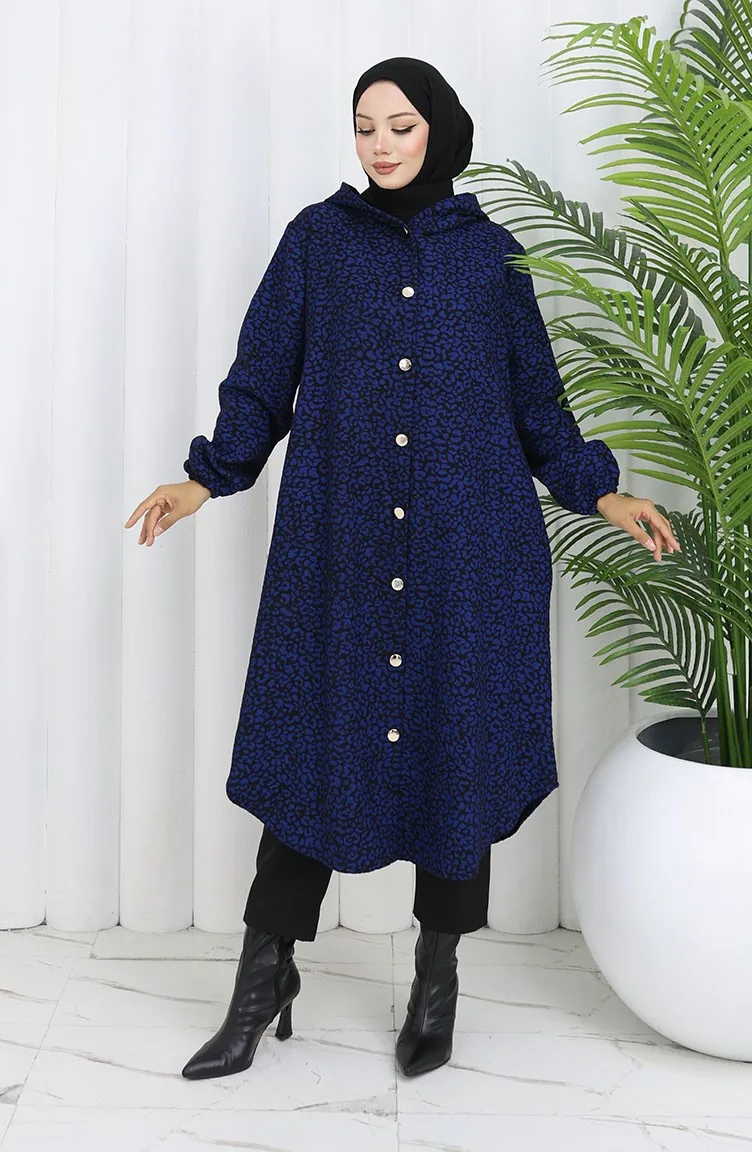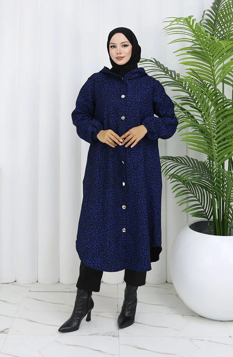 Saxon blue color is used. It is cachet fabric, you can use it easily in winter. Designed with patterned fabric. It's made of elastic sleeves. Designed from thick fabric. Plus size option available.