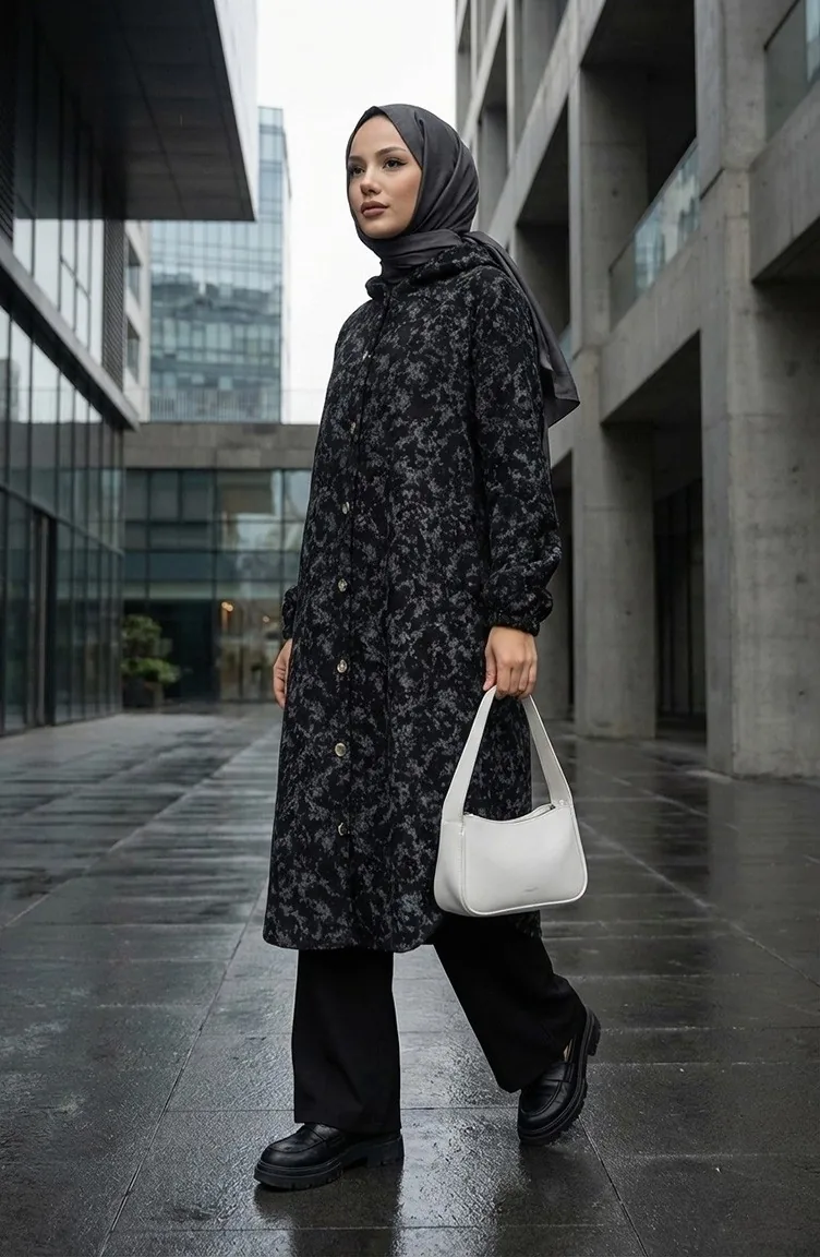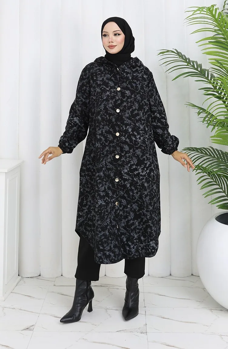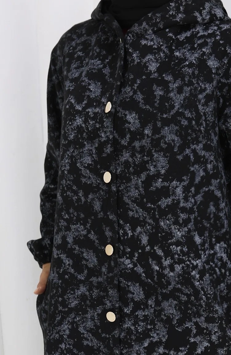 Kasjmier Jas Met Patroon En Capuchon 0187A-02 Zwartgrijs 0187A-02
