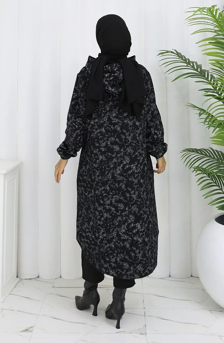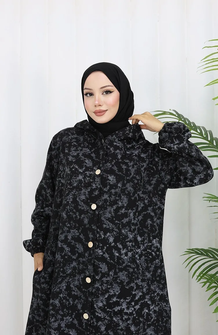 Black color is used. It is cachet fabric, you can use it easily in winter. Designed with patterned fabric. It's made of elastic sleeves. Designed from thick fabric. Plus size option available.