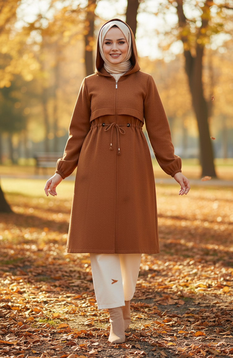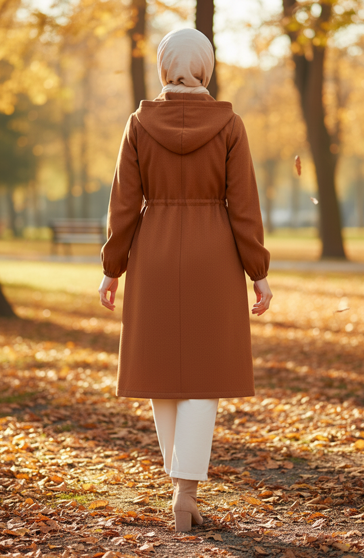 Opbergcape Met Trekkoord In De Taille En Capuchon 3199-05 Bruin 3199-05