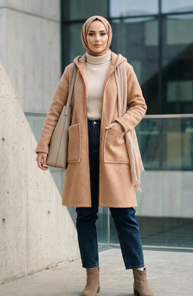 Winterjas Met Capuchon Ritssluiting En Zakken 2211-04 Beige 2211-04