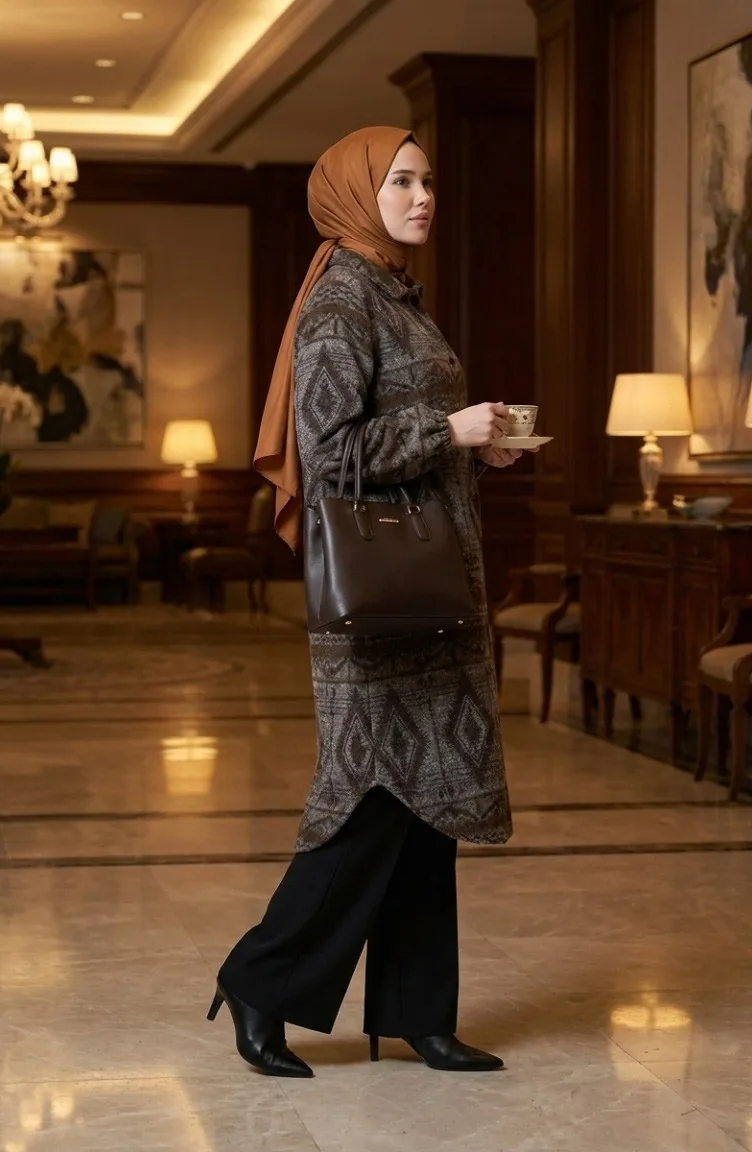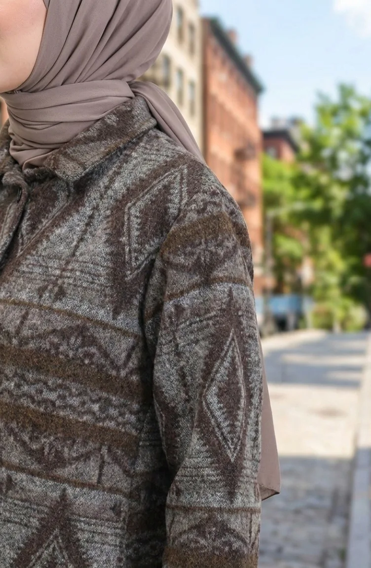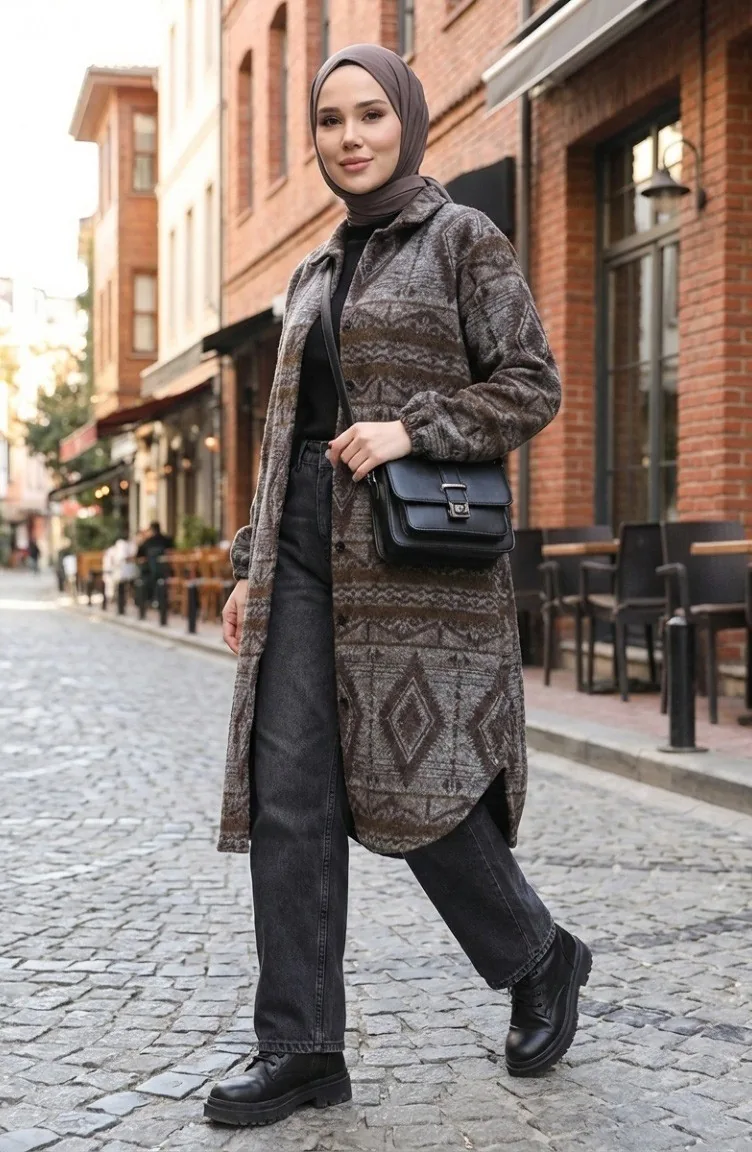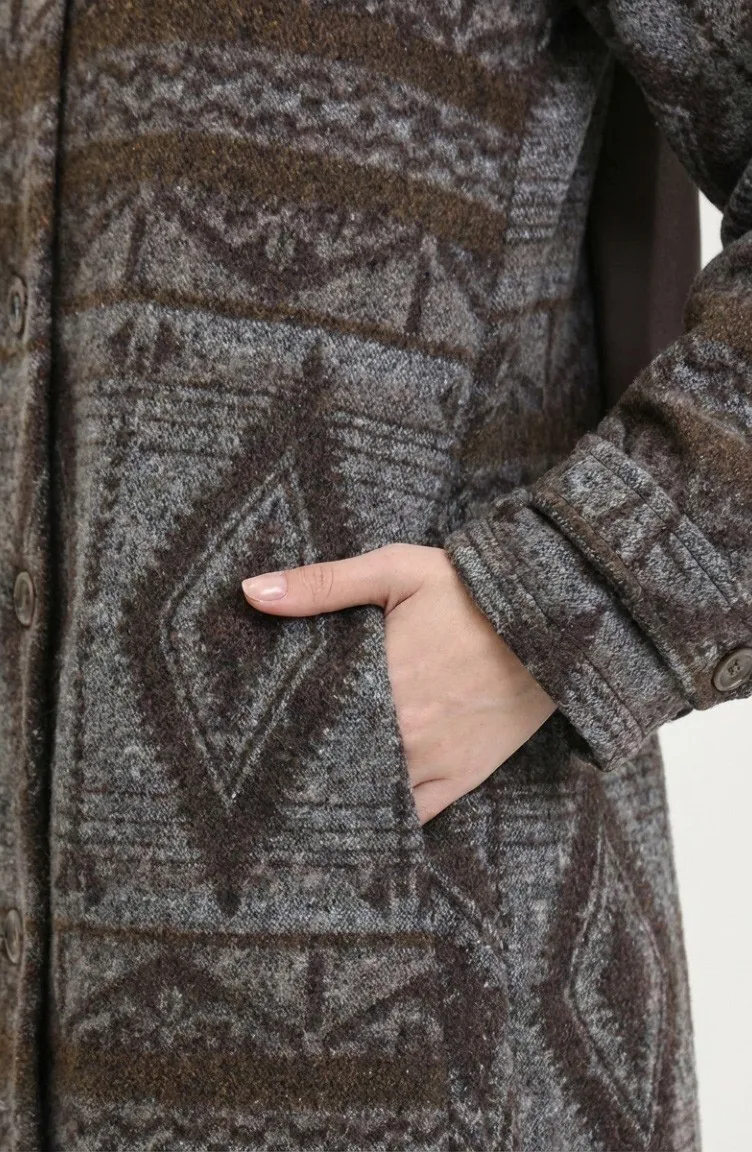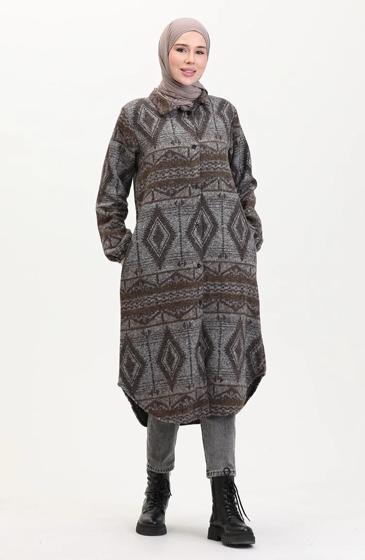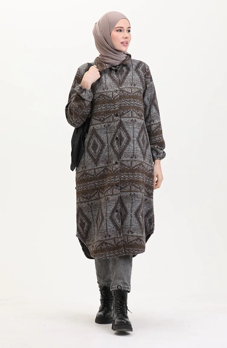 Winterjas Met Etnische Print En Knoopsluiting 2500-03 Antracietbruin 2500-03