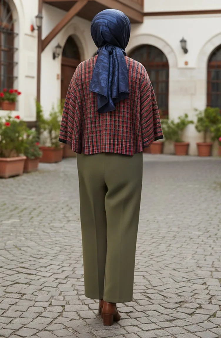 Sefamerve'nin özenle seçilmiş koleksiyonunda yer alan bu ekose desenli omuz şalı, muhafazakar giyim tarzını modern çizgilerle buluşturuyor. Kiremit renginin sıcak tonları ve klasik kareli dokusuyla her mevsim gardırobunuzun joker parçası olmaya adaydır. Pamuk ve polyester karışımı özel dokusu sayesinde cildinize nefes aldırırken, gün boyu formunu koruyarak kırışıklık oluşumunu en aza indirir.Kumaş Özelliği: Yüksek kaliteli pamuk-polyester karışımı, yumuşak doku ve dayanıklı yapı.Tasarım Detayları: Geniş kesim omuz yapısı, dökümlü duruş ve modern ekose deseni.Kullanım Alanı: Dört mevsim kullanıma uygun; serin yaz akşamlarında veya kışın kaban üzerine şık bir katman olarak tercih edilebilir.Kombin Önerisi: Görseldeki gibi vizon veya haki tonlarında bir pantolon ve sade bir bluz ile eşleştirerek çabasız bir şıklık yakalayabilirsiniz.Bu ürün, hem günlük kullanımda hem de ofis şıklığında tesettür giyim prensiplerine uygun, zarif bir örtücülük sunar. Hareket özgürlüğünü kısıtlamayan hafif yapısı ve zamansız deseniyle stilinize derinlik katar. Kaliteli işçiliği ve dökümlü kumaşı, her vücut tipine uyum sağlayacak şekilde tasarlanmıştır. Sefamerve kalitesiyle sunulan bu özel tasarım, şıklığından ödün vermeyen kadınlar için ideal bir seçimdir.