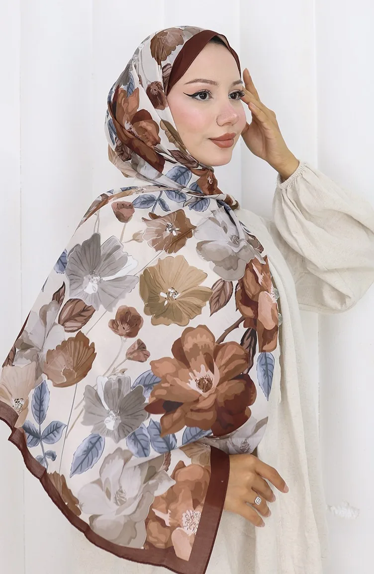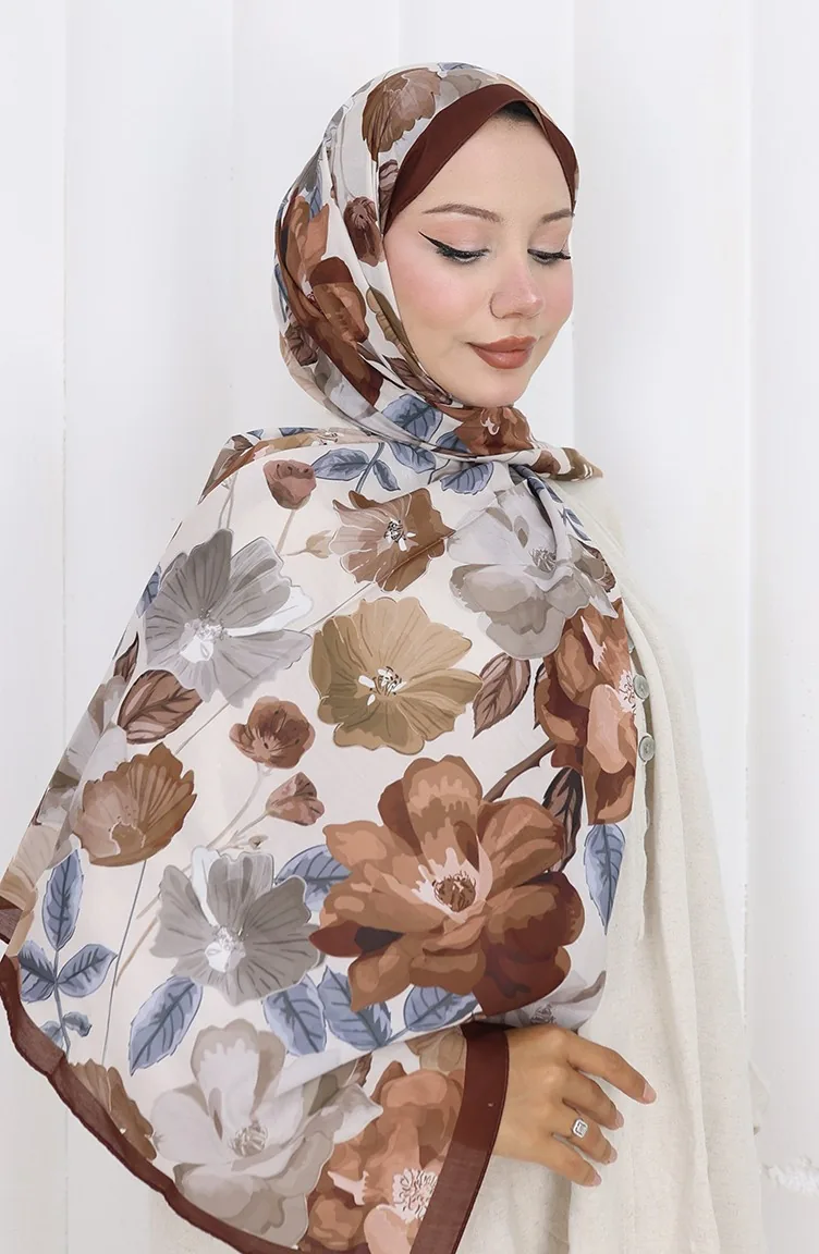 Desenli Pamuklu Koza Şal 70323-02 Kahverengi