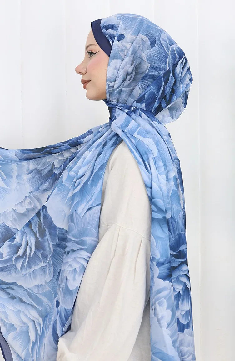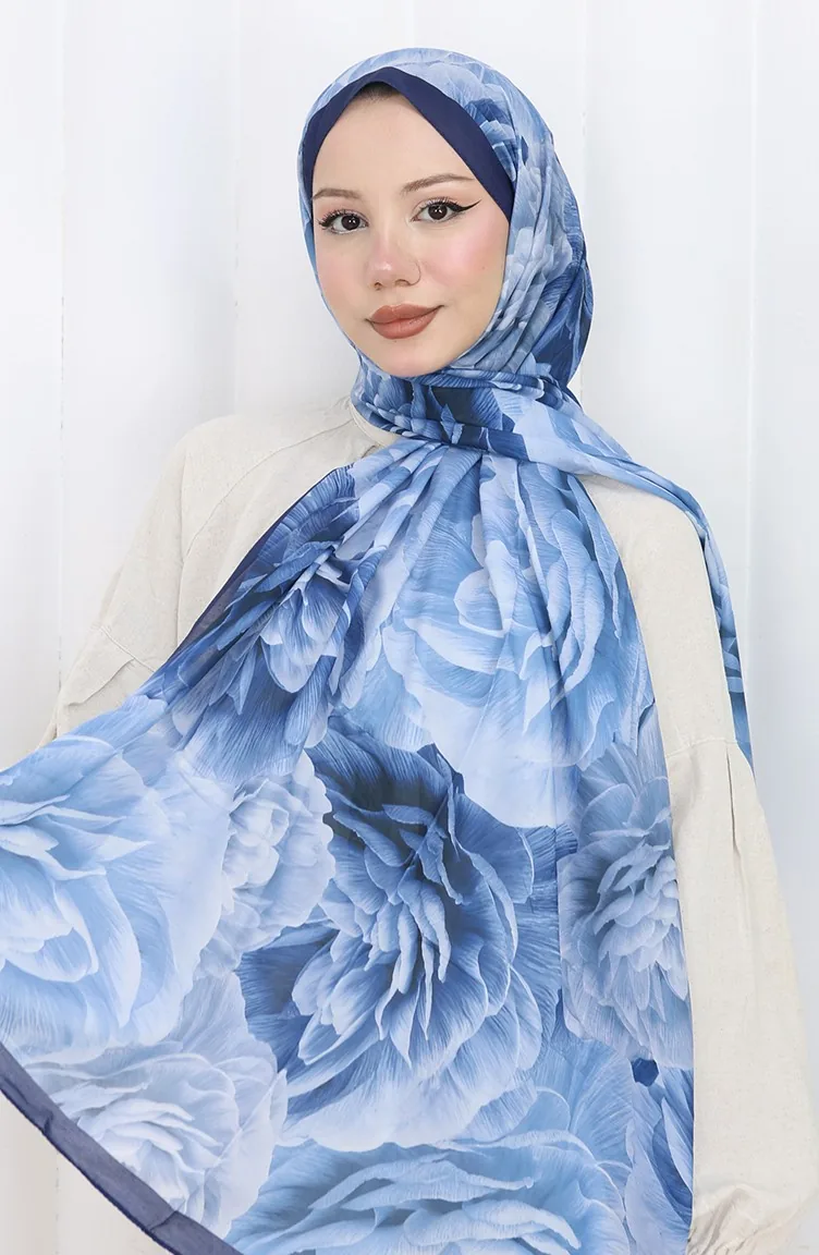 Pamuklu Desenli Koza Şal 70322-04 Lacivert Mavi