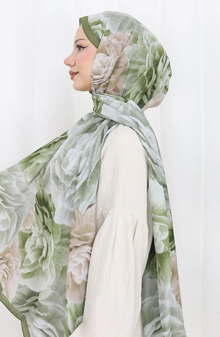 Pamuklu Desenli Koza Şal 70322-12 Haki