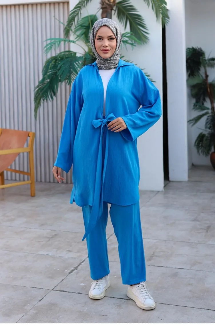 Bağlama Detaylı Kimono Takım Deniz Mavisi 1225