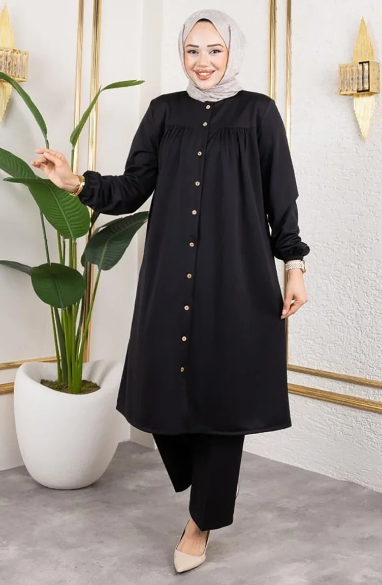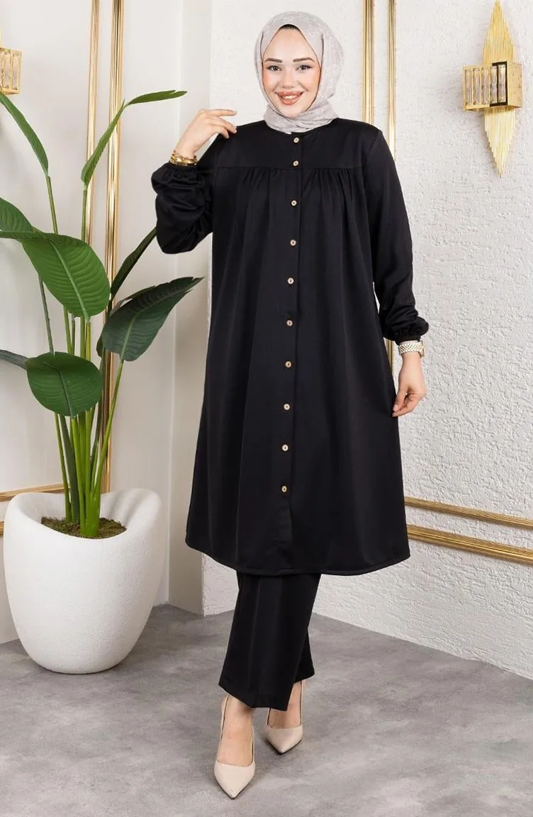 Büzgülü Tesettür Takım 2061-01 Siyah