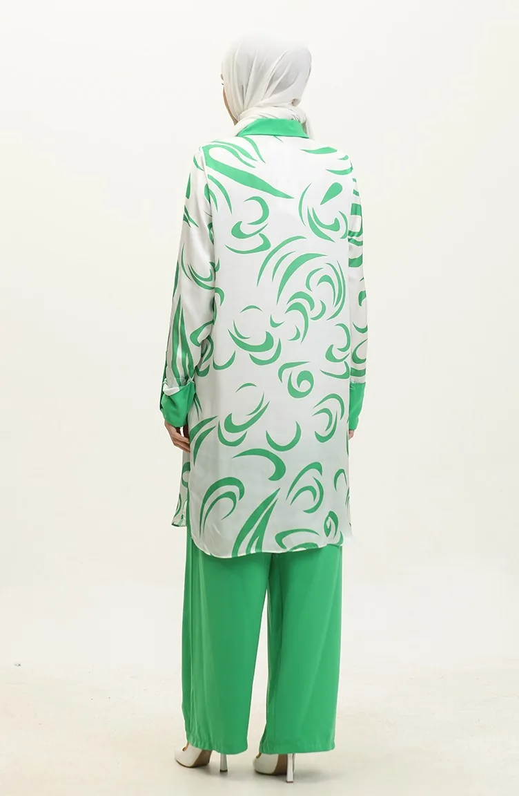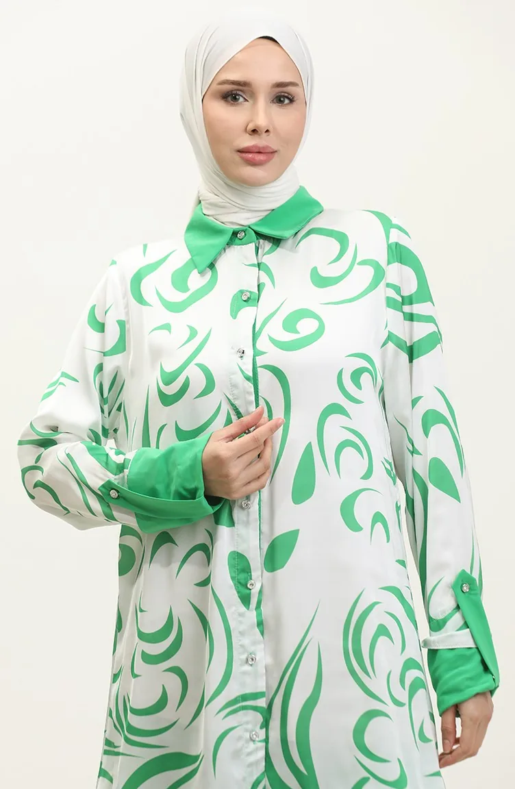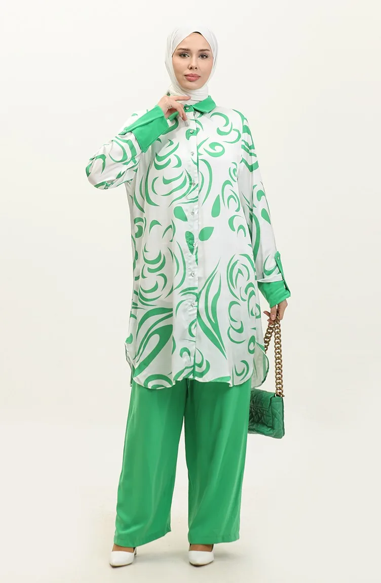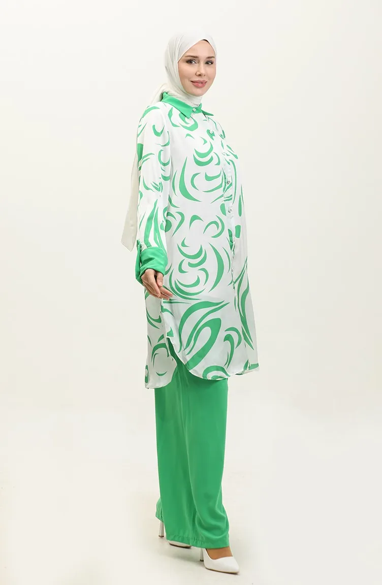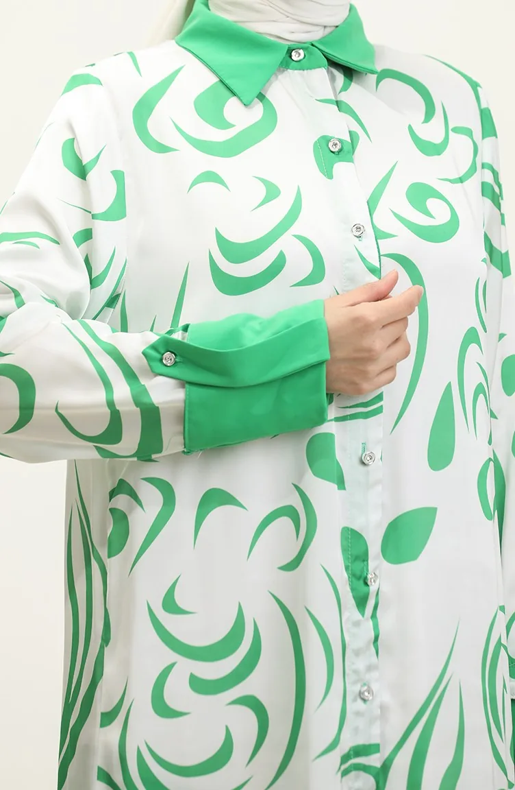 Yeşil renktedir. Polyester kumaş. Desenli kumaş. Kışlık. Büyük beden seçeneği mevcuttur.