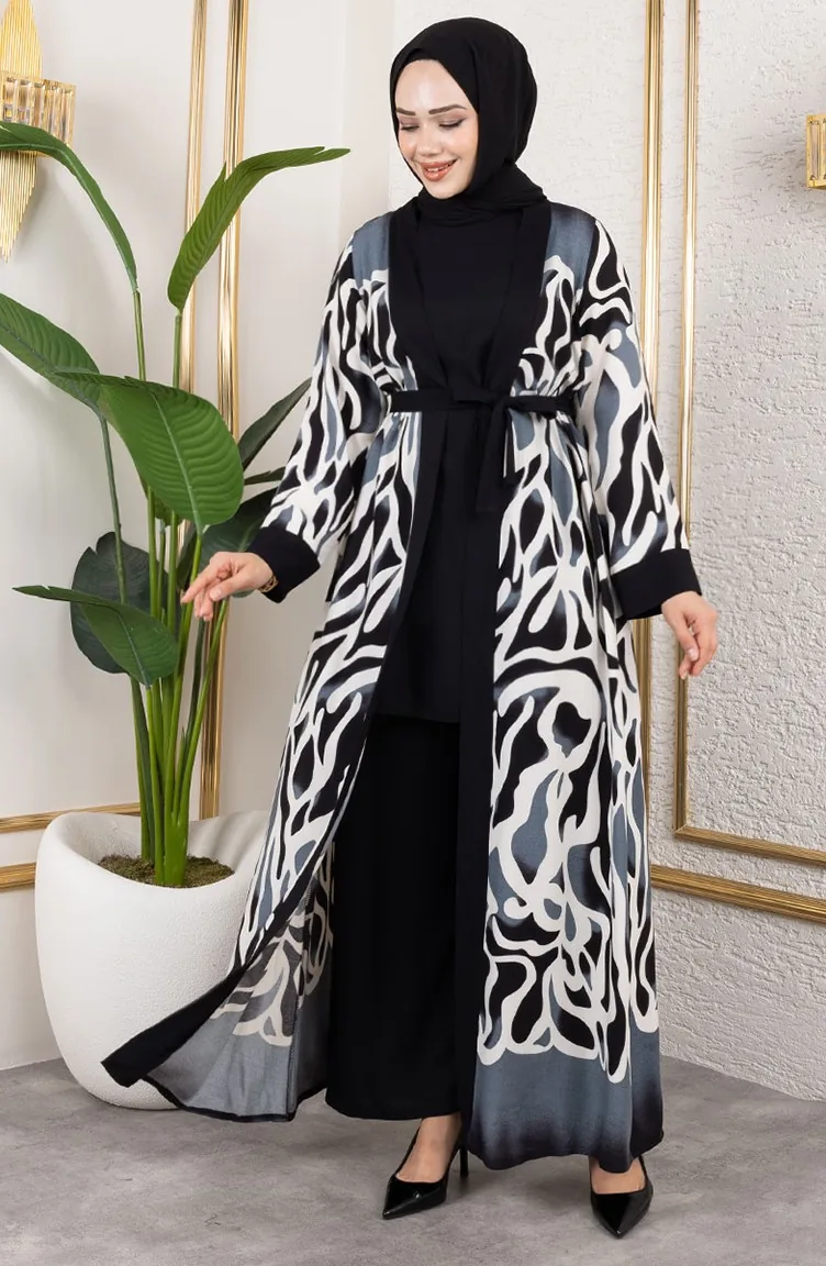 Desenli Üçlü Viskon Takım 0345-01 Siyah