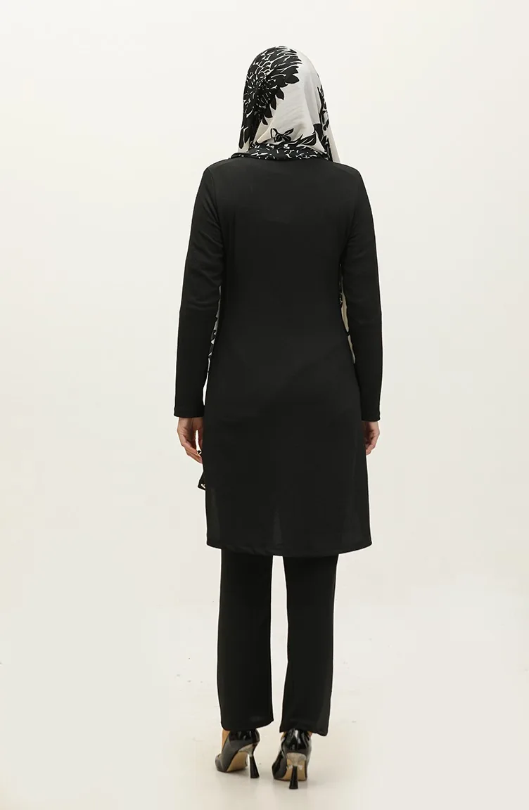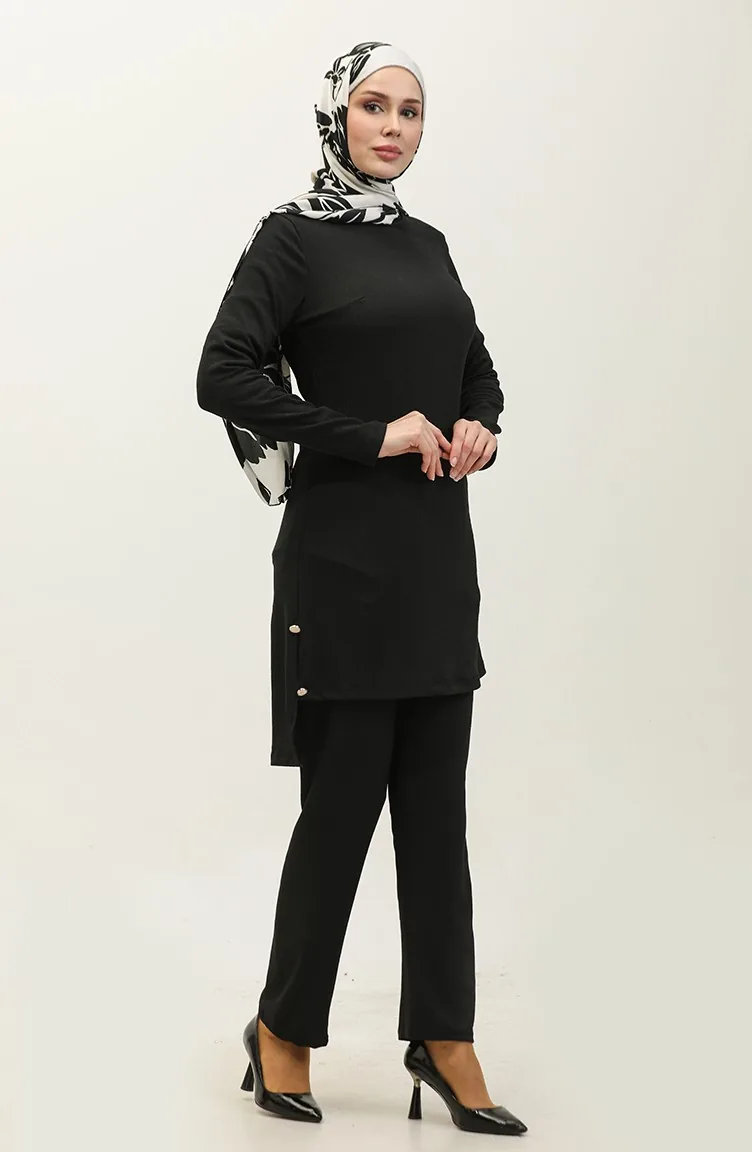 Düğme Detaylı Tunik Pantolon İkili Takım 0101DA-04 Siyah