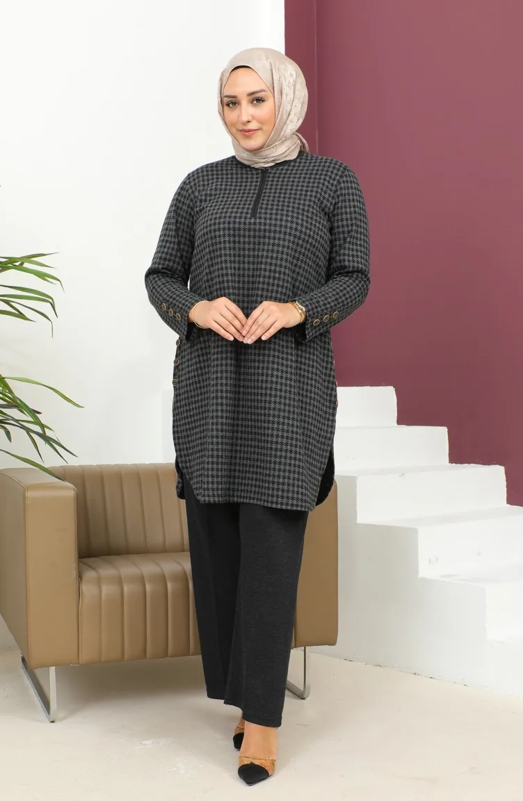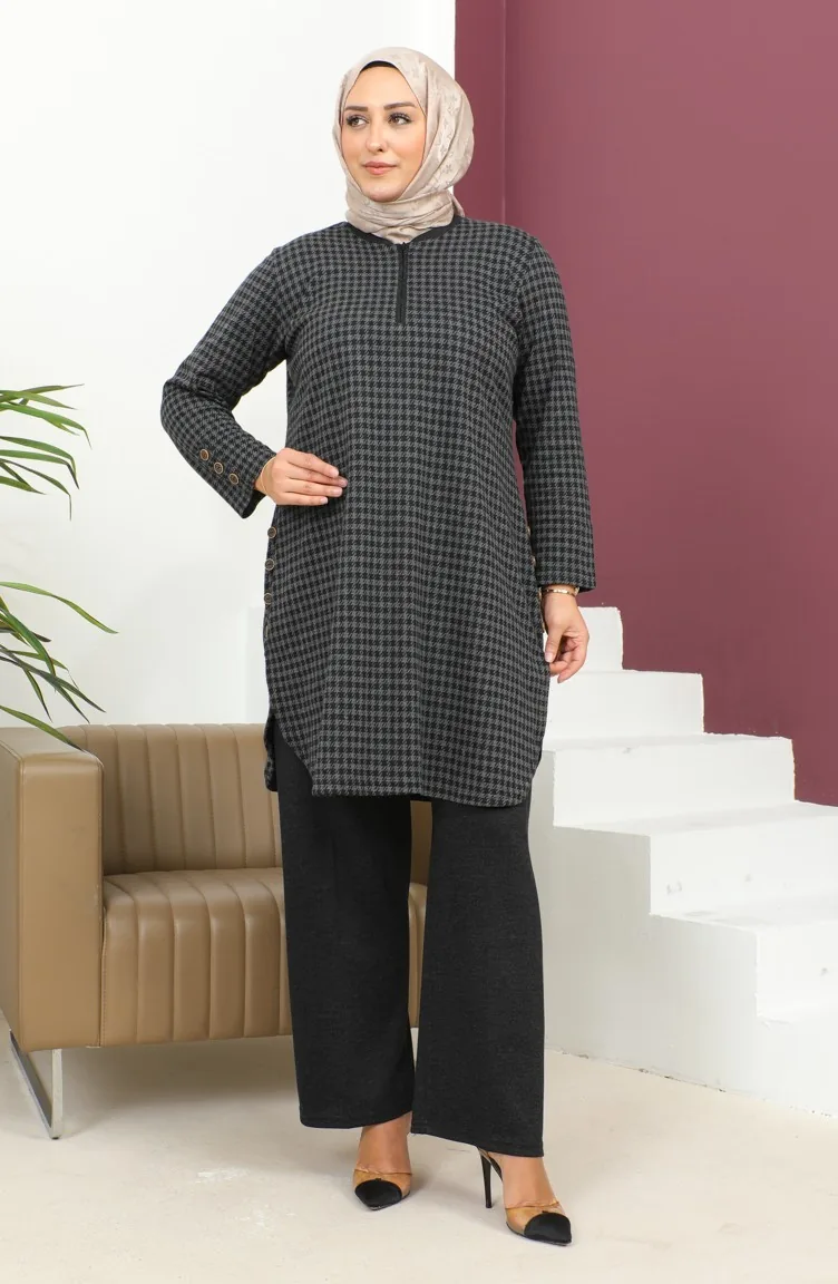 Kazayağı Desen Büyük Beden İkili Takım 2692K-01 Siyah
