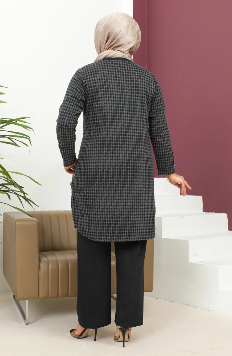 Siyah renktedir. Örme jakar kumaş. Desenli kumaş. Düğme detaylı. Uzun kolludur. Kışlık. Kadın. Büyük beden seçeneği mevcuttur.