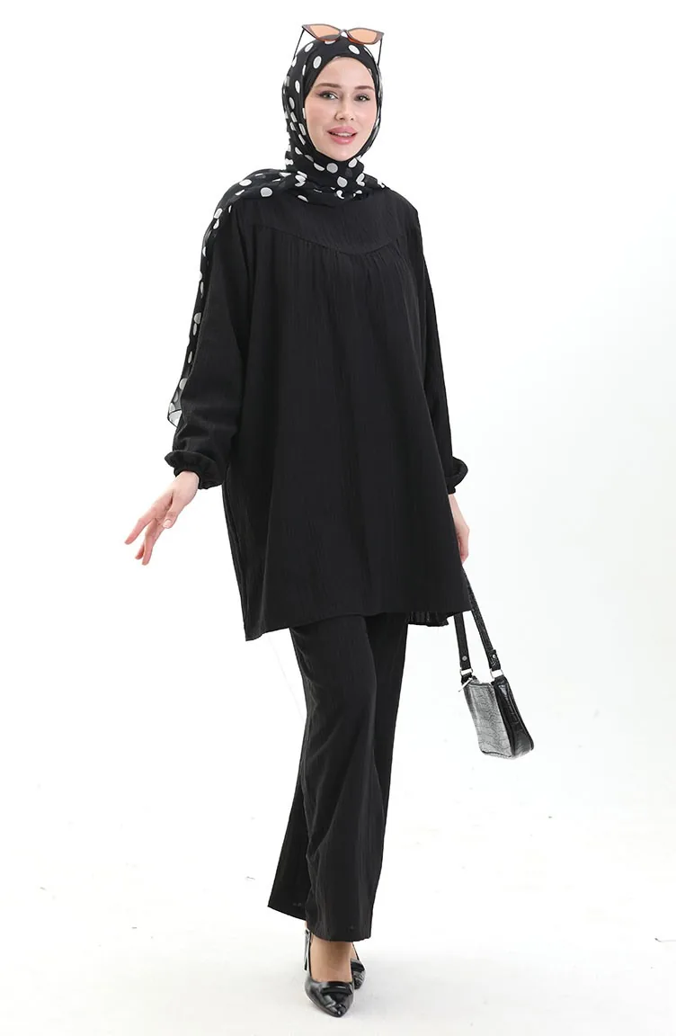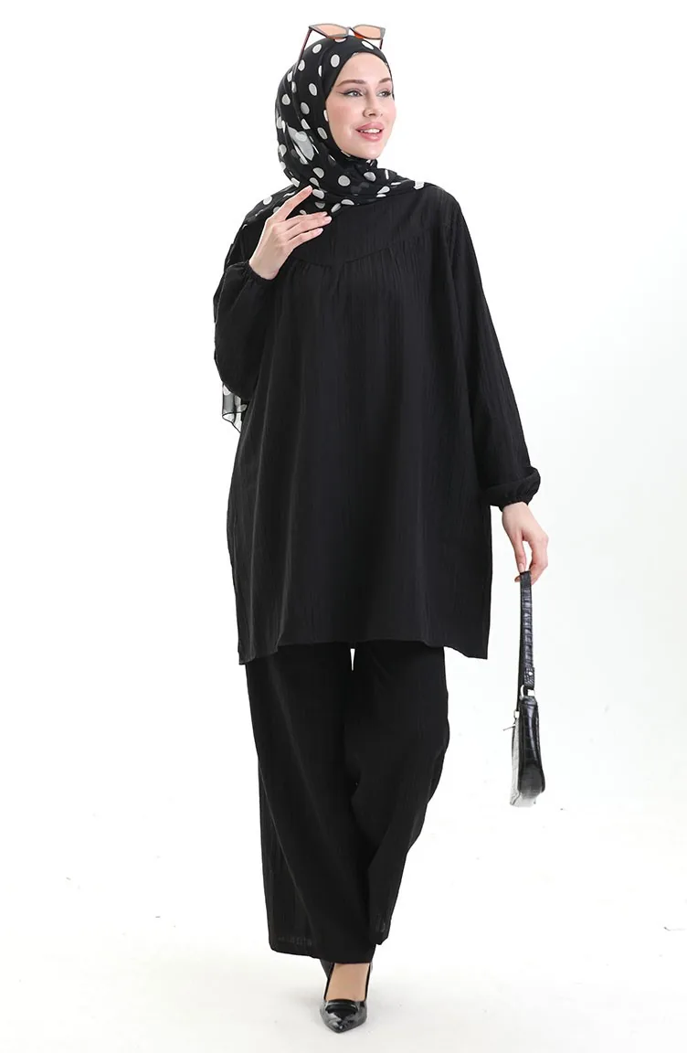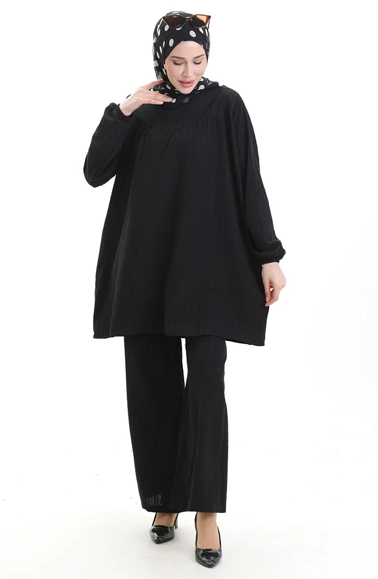 Kolu Lastikli Tunik Pantolon İkili Takım 0103-01 Siyah