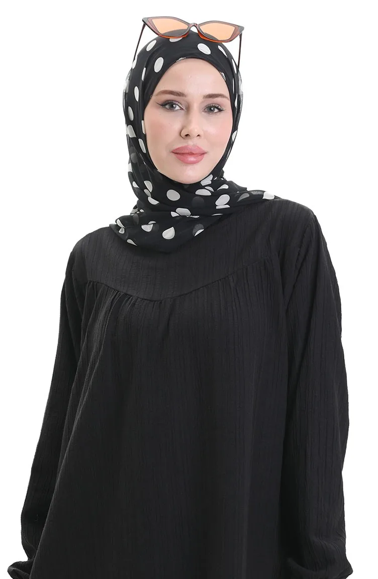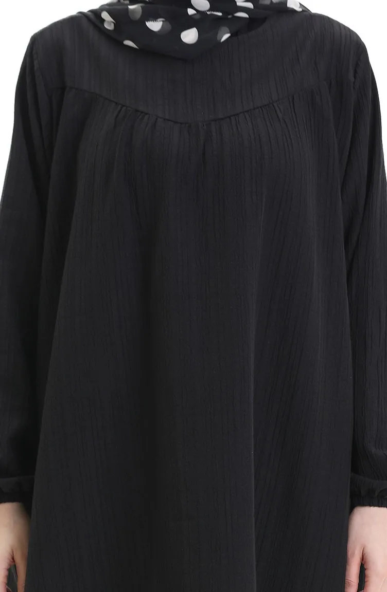Siyah renktedir. Pamuk dokuma kumaş. Sade. Tunik. Lastik kollu. Sıfır yaka detayı ile rahat kullanıma sahiptir. 4 Mevsim tercih edebilirsiniz. Mankenin giydiği beden ölçüsü'dür.