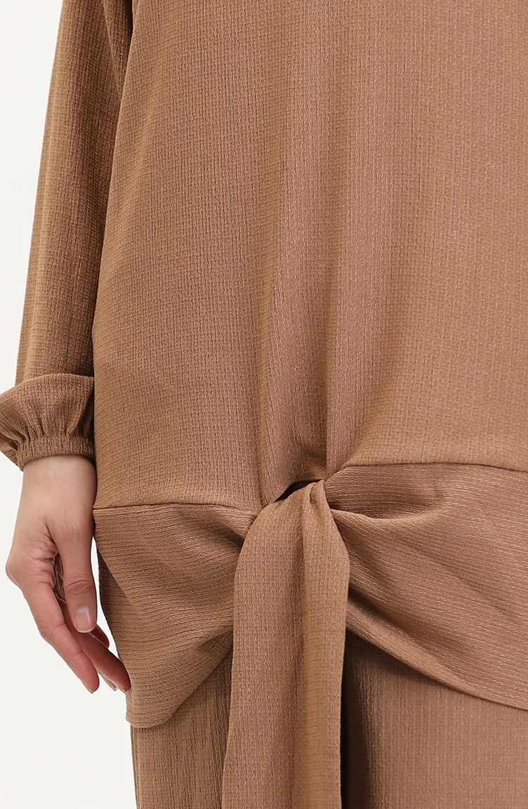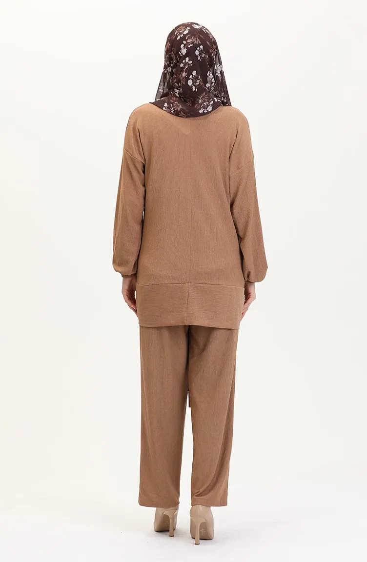 Önden Bağlamalı Tunik Pantolon İkili Takım 7680-03 Sütlü kahve
