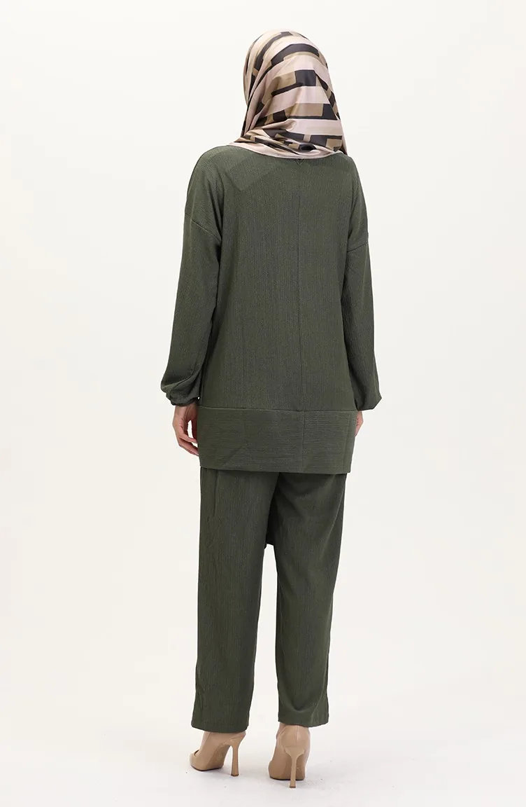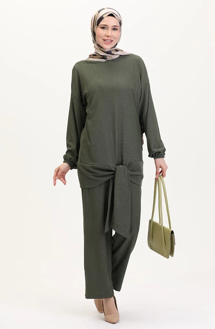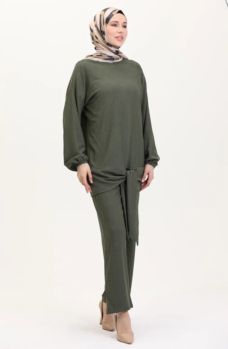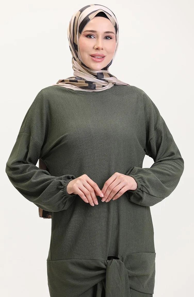 Önden Bağlamalı Tunik Pantolon İkili Takım 7680-05 Haki
