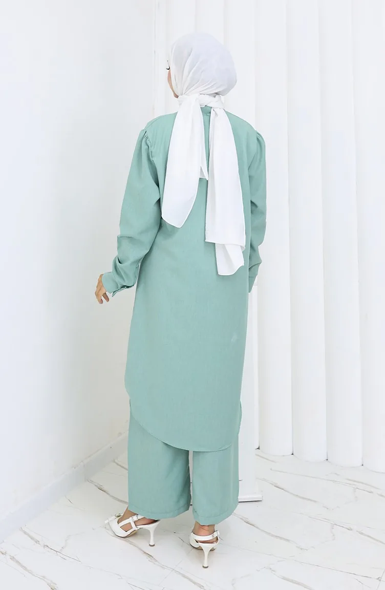 Taşlı Tunik Pantolon İkili Takım 2090-02 Çağla Yeşili