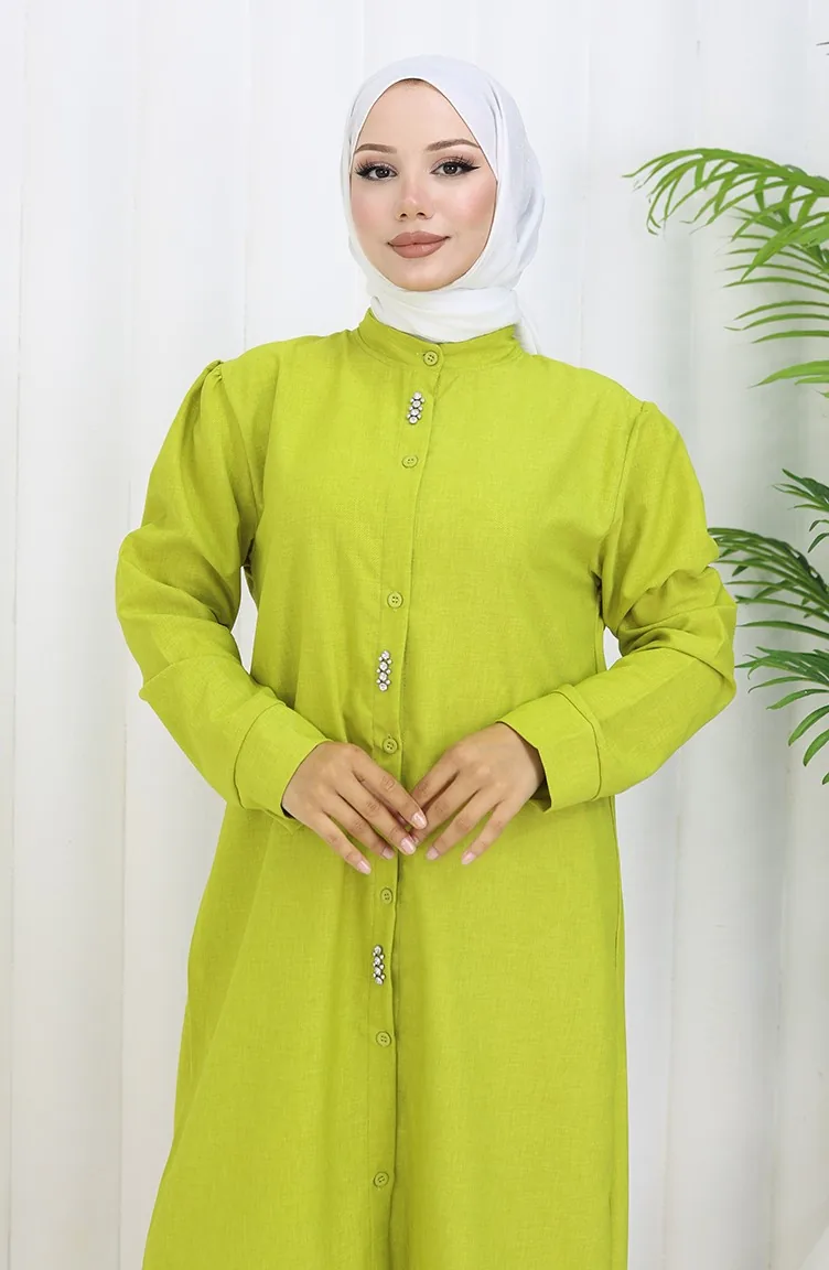 Yağ Yeşili renktedir. Pamuk dokuma kumaş. Sade. Düğmeli. Hakim yaka detayı ile kullanışlı modeldir. 4 Mevsim tercih edebilirsiniz. Büyük beden seçeneği mevcuttur.