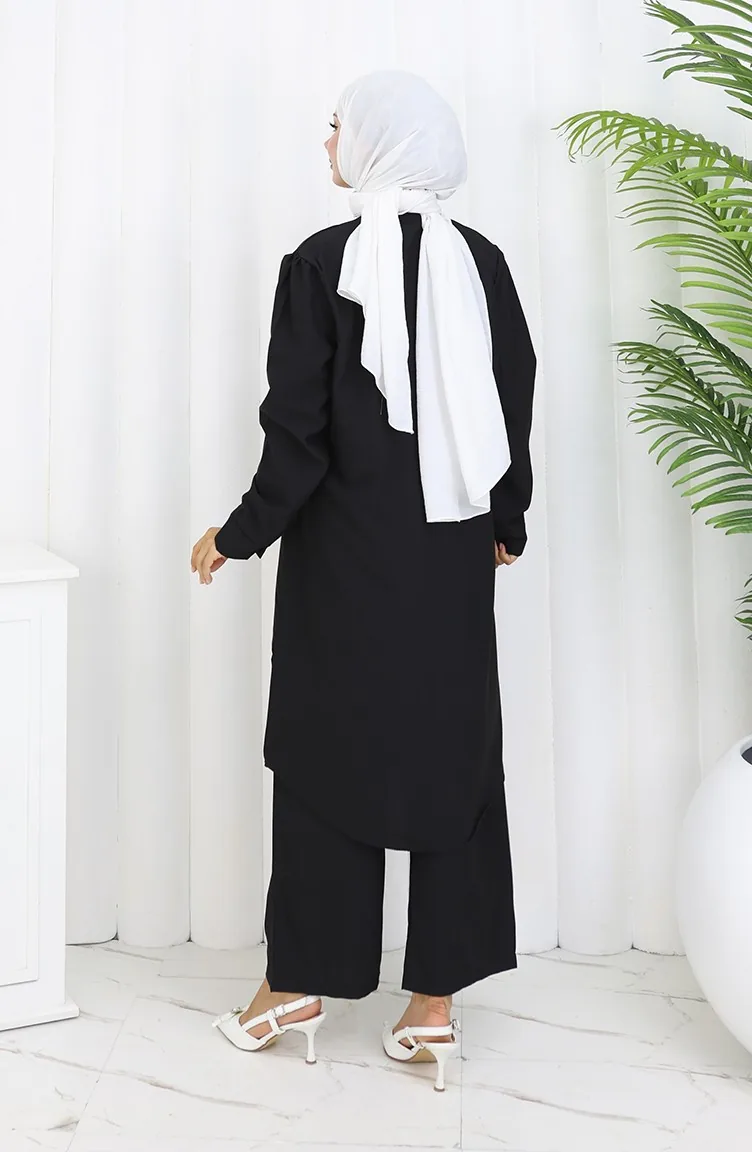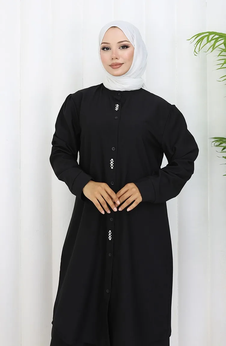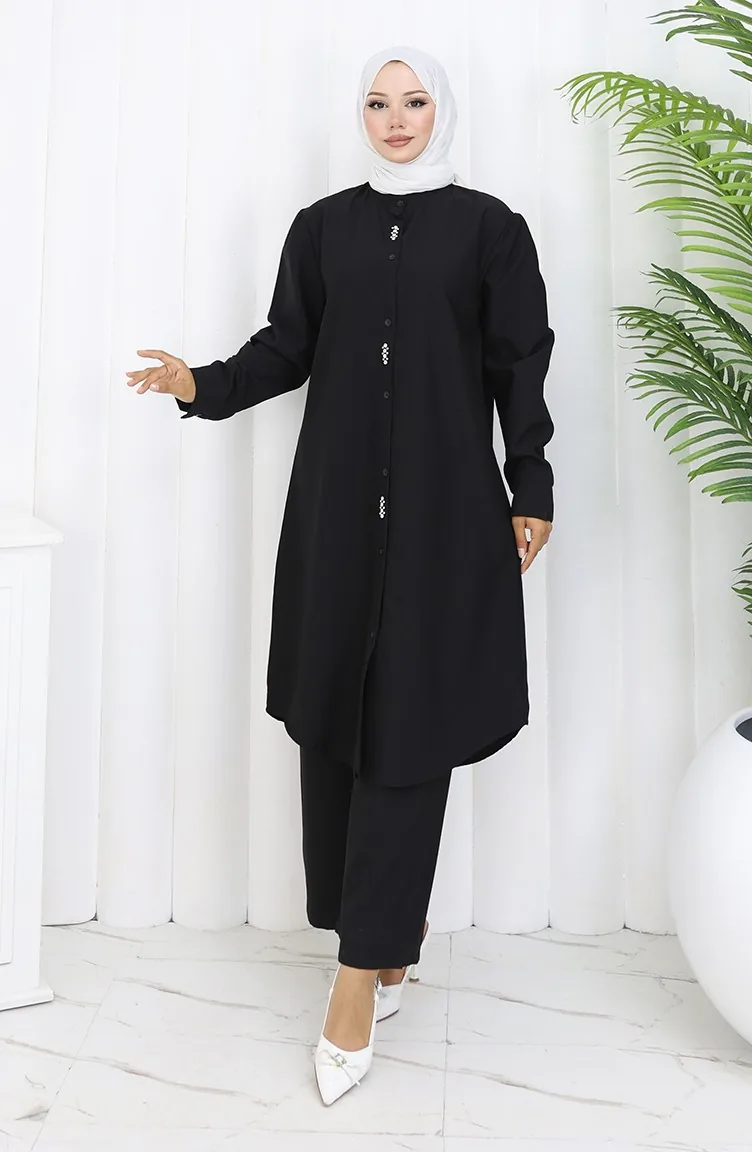 Taşlı Tunik Pantolon İkili Takım 2090-05 Siyah