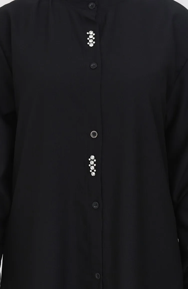 Siyah renktedir. Pamuk dokuma kumaş. Sade. Düğmeli. Hakim yaka detayı ile kullanışlı modeldir. 4 Mevsim tercih edebilirsiniz. Büyük beden seçeneği mevcuttur.