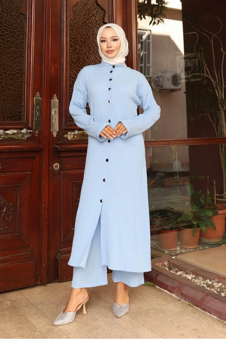 Yaka Detaylı Uzun Takım Bebe Mavisi Özellikleri
