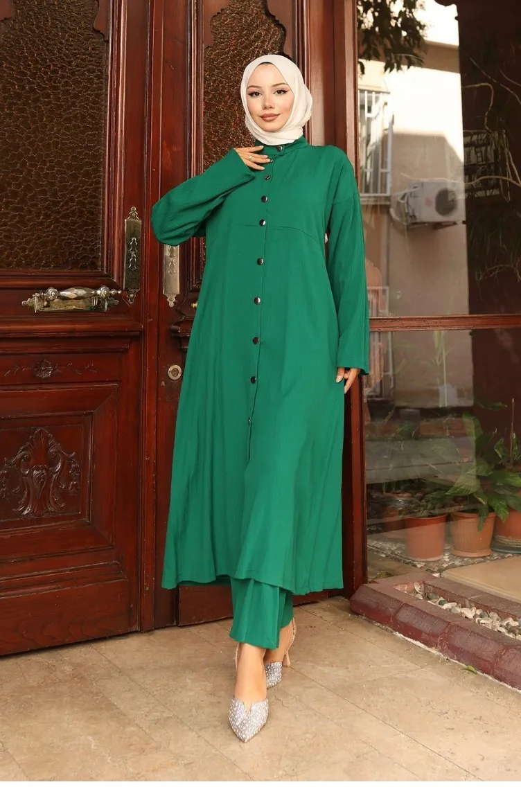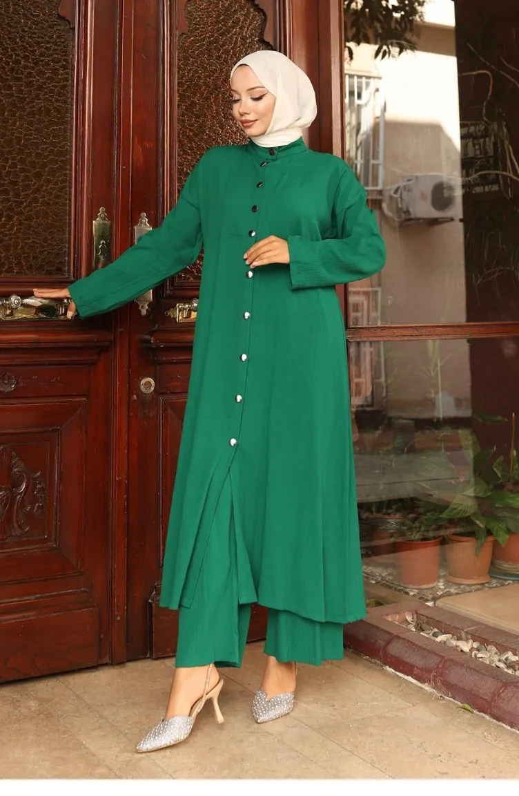 Yaka Detaylı Uzun Takım Yeşil