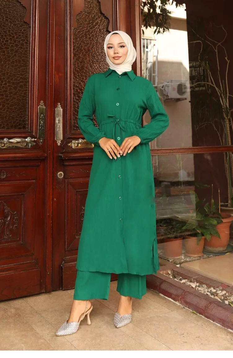Yırtmaç Detaylı Uzun Takım Yeşil