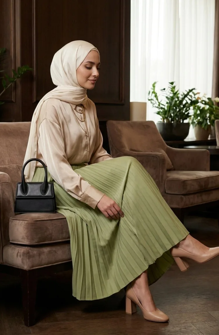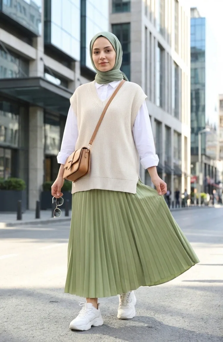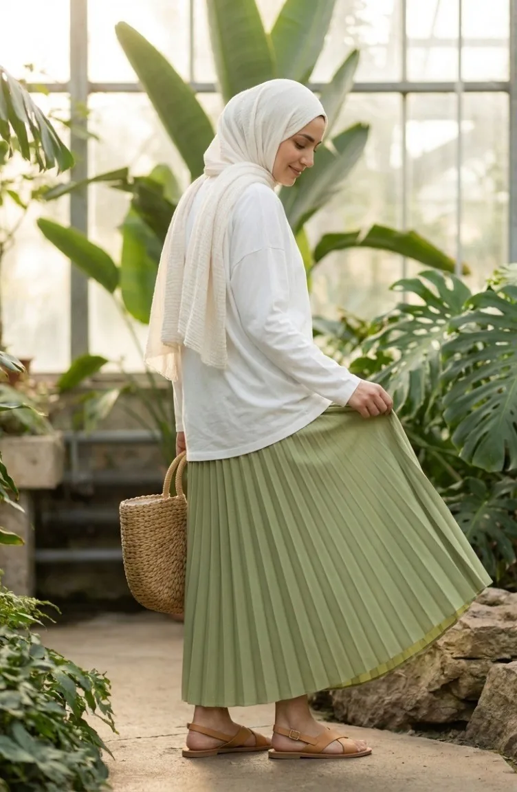 Zarif duruşu ve konforlu yapısıyla tesettür giyimin vazgeçilmez parçası olan beli lastikli piliseli etek, yeni sezonda dolabınızın yıldızı olmaya aday. Acı kahve tonuyla hem günlük kombinlerinizde hem de özel davetlerde sofistike bir görünüm sunar.Kumaş Özelliği: Nefes alabilen ve terletmeyen hafif şifon kumaştan üretilmiştir.Tasarım Detayları: Beli lastikli yapısı sayesinde gün boyu rahat hareket imkanı sağlar. Kaliteli piliseleri ütü gerektirmez ve formunu korur.Kombin Önerisi: Görseldeki gibi beyaz bir gömlek ve nude tonlarda bir şal ile modern bir görünüm yakalayabilir veya blazer ceketlerle ofis şıklığı oluşturabilirsiniz.İlkbahar ve yaz aylarının enerjisine uygun, iç göstermeyen yapısı ve dökümlü kesimiyle her vücut tipine uyum sağlar. Muhafazakar moda standartlarına uygun uzunluğu ile şıklığı ve edebi bir arada sunar.