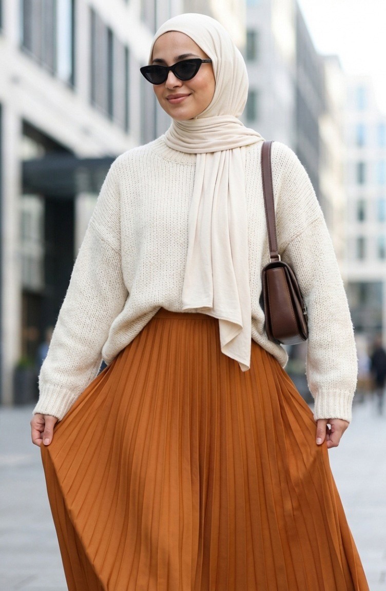 Zarif duruşu ve konforlu yapısıyla tesettür giyimin vazgeçilmez parçası olan beli lastikli piliseli etek, yeni sezonda dolabınızın yıldızı olmaya aday. Acı kahve tonuyla hem günlük kombinlerinizde hem de özel davetlerde sofistike bir görünüm sunar.Kumaş Özelliği: Nefes alabilen ve terletmeyen hafif şifon kumaştan üretilmiştir.Tasarım Detayları: Beli lastikli yapısı sayesinde gün boyu rahat hareket imkanı sağlar. Kaliteli piliseleri ütü gerektirmez ve formunu korur.Kombin Önerisi: Görseldeki gibi beyaz bir gömlek ve nude tonlarda bir şal ile modern bir görünüm yakalayabilir veya blazer ceketlerle ofis şıklığı oluşturabilirsiniz.İlkbahar ve yaz aylarının enerjisine uygun, iç göstermeyen yapısı ve dökümlü kesimiyle her vücut tipine uyum sağlar. Muhafazakar moda standartlarına uygun uzunluğu ile şıklığı ve edebi bir arada sunar.
