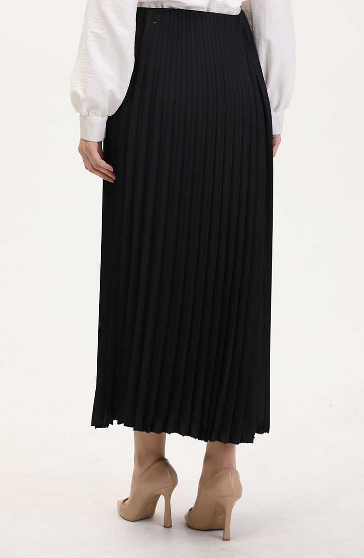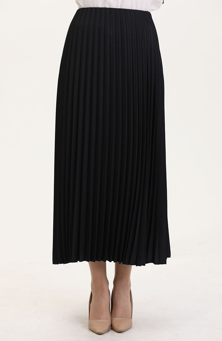 Hijab (tesettür) stilinin zamansız klasiği olan bu siyah piliseli etek, modest dress (elbise) koleksiyonunuza zarif bir alternatiftir. İnce plise detayları, dökümlü krep (Polyester/Pamuk karışımlı) kumaşıyla birleşerek her adımda hareketli bir görünüm sağlar.