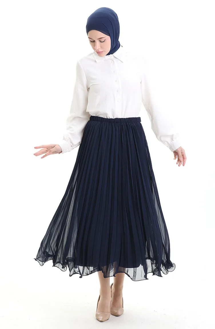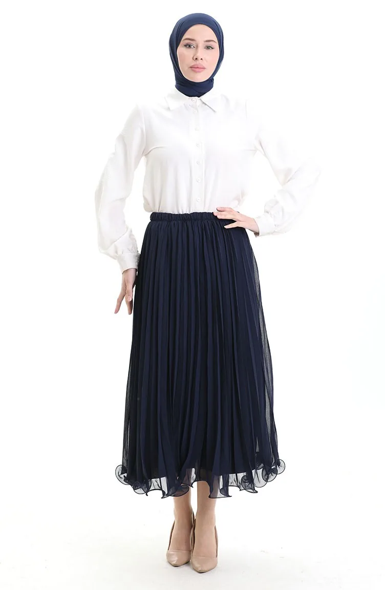 Piliseli Şifon Etek 71262-02 Lacivert