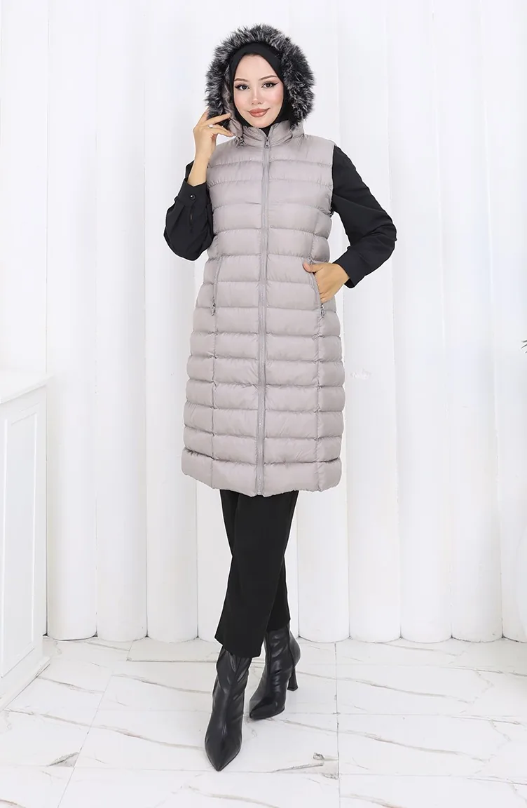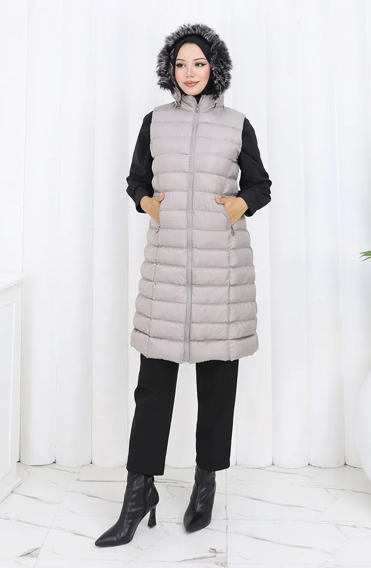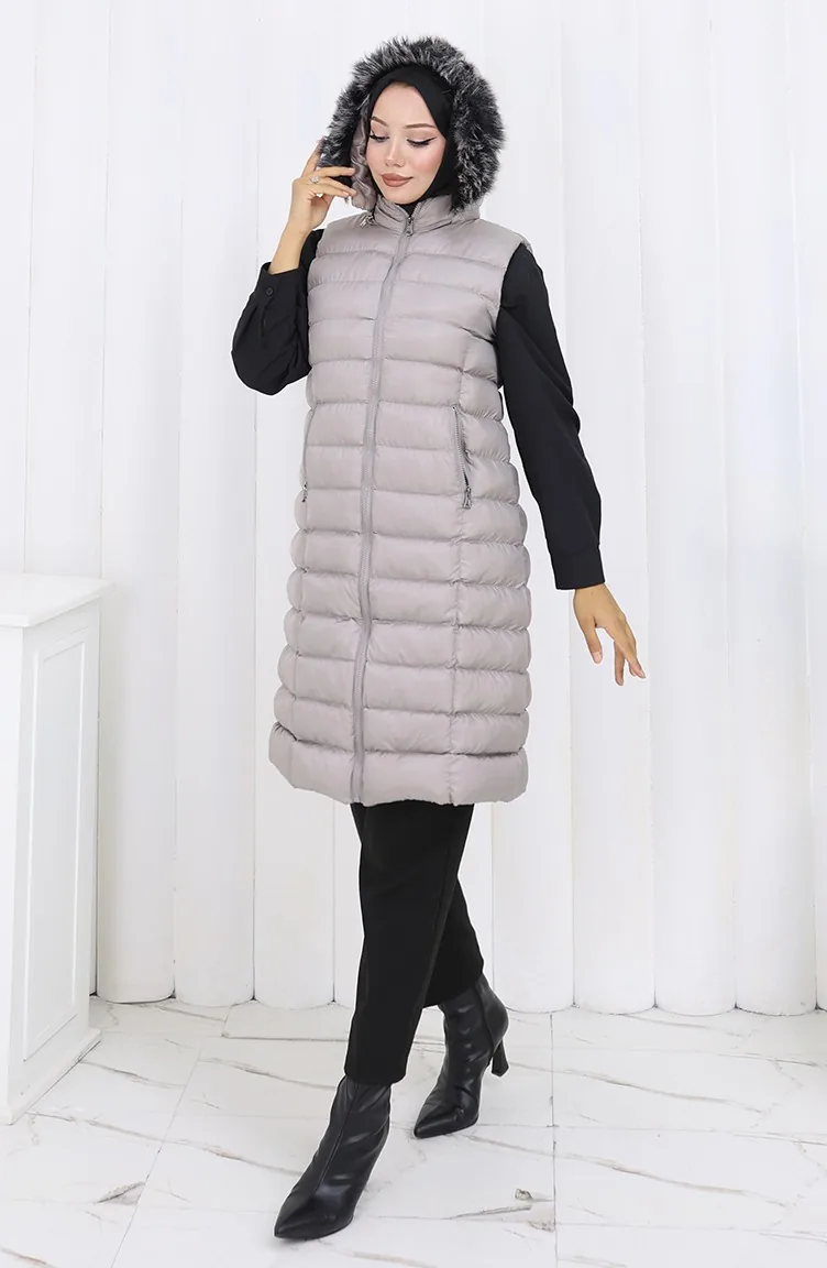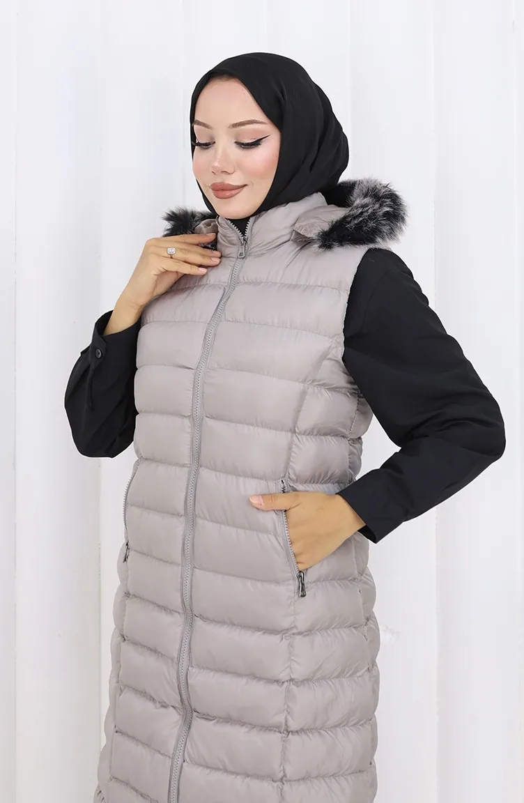 Kapüşonlu Fermuarlı Şişme Yelek 0177-01 Gri
