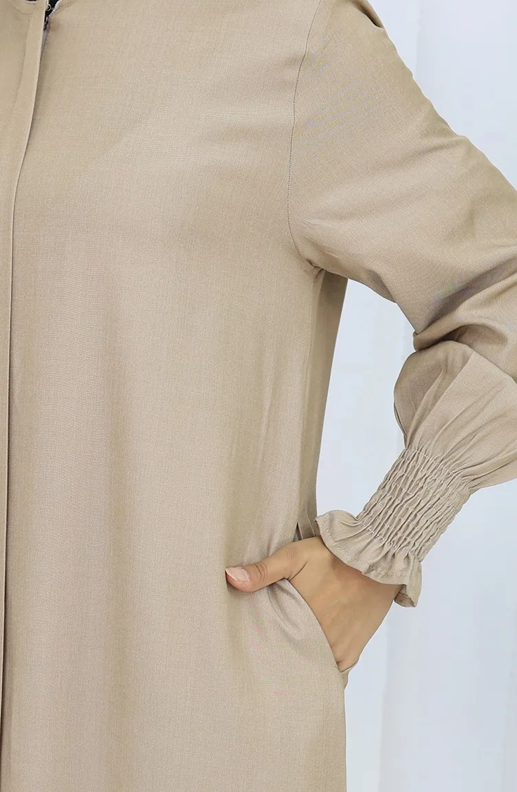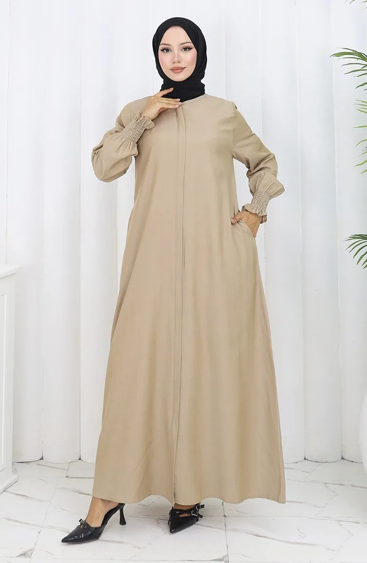 Kolu Lastikli Fermuarlı Ferace 2503-03 Bej