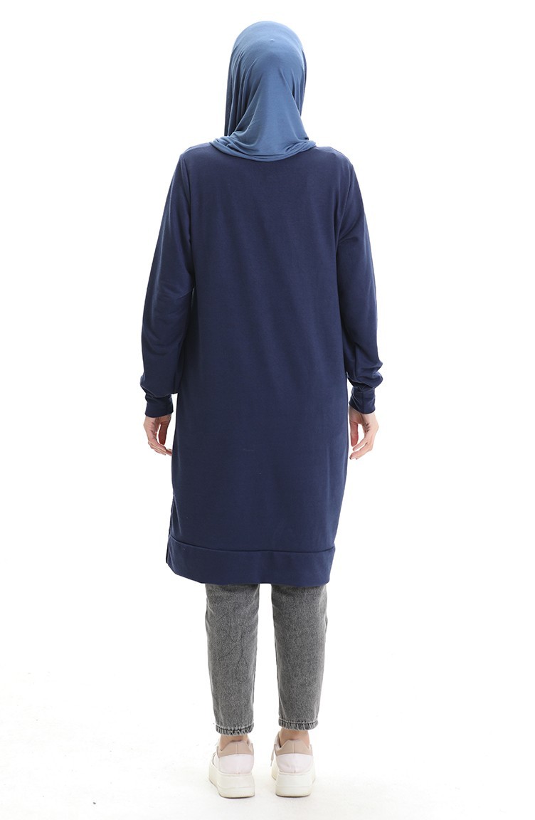 Hijab (tesettür) stilinin en rahat ve en çok yönlü parçası: lacivert spor tunik. Modest dress (elbise) yerine mükemmel bir alternatif olan bu uzun tunik, uzun sweatshirt formundadır. Islamic clothing (İslami giyim) anlayışına uygun bol kesim (relaxed fit) kalıbı, gün boyu konfor sağlar.