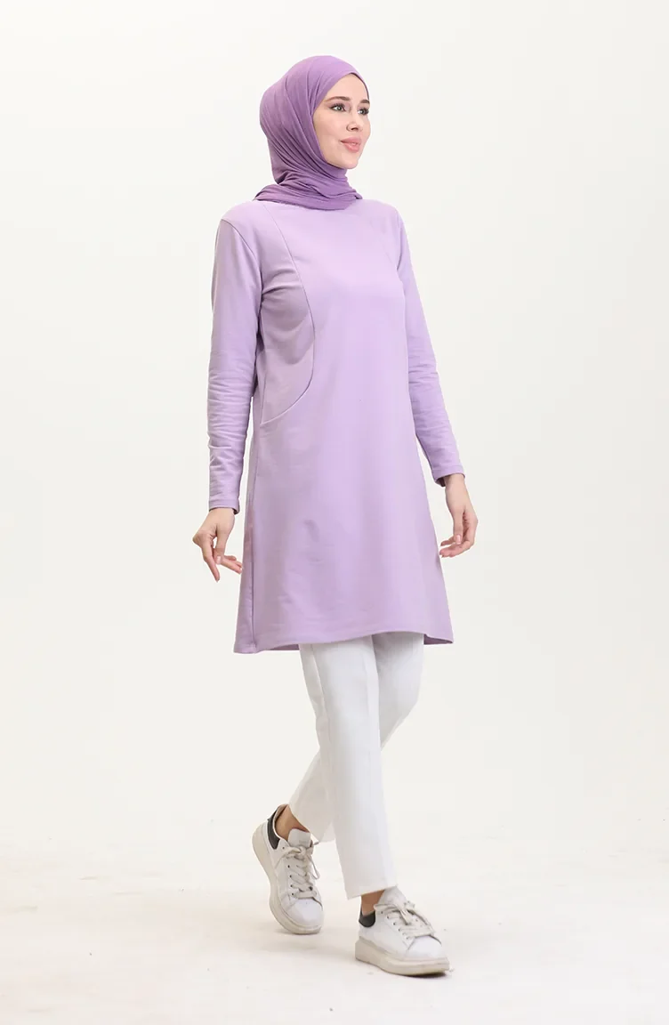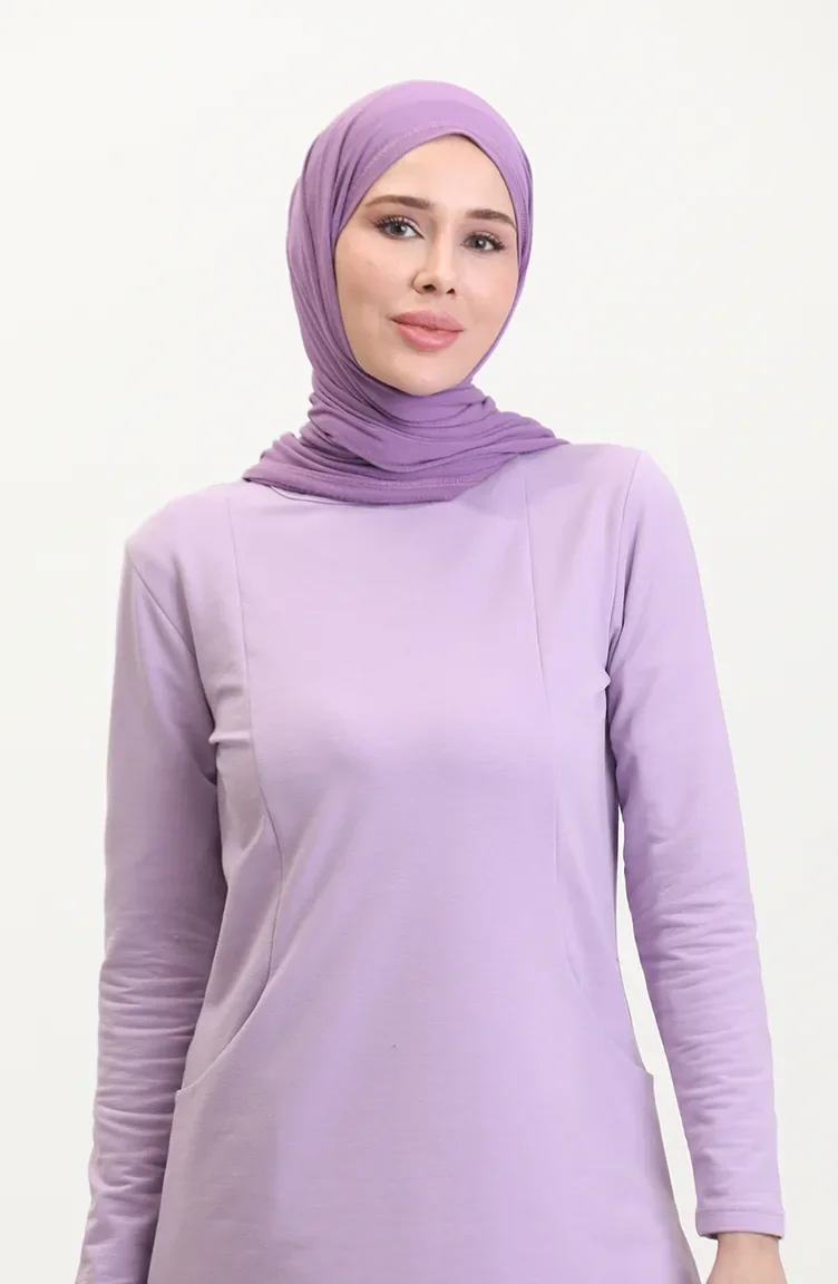 İki İplik Cepli Spor Tunik 5028-02 Lila