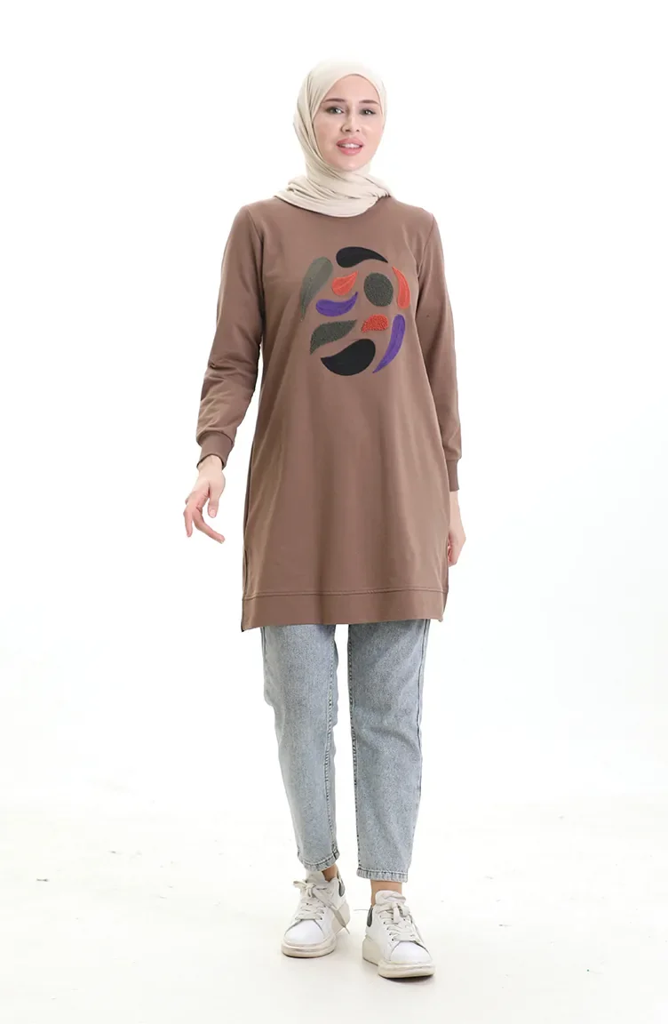 Ribanalı Yırtmaçlı Araboy Tunik 9117-01 Kahverengi