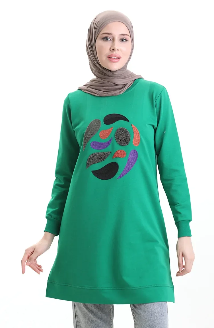 Ribanalı Yırtmaçlı Araboy Tunik 9117-07 Zümrüt Yeşili
