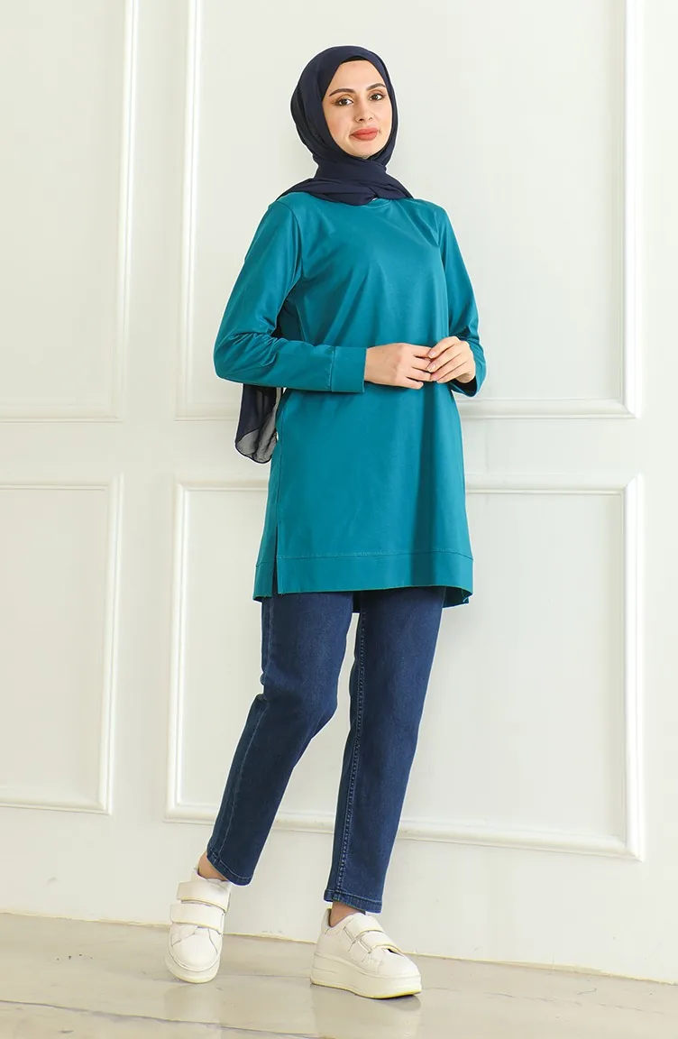 Yırtmaçlı Araboy Tunik 9140-08 Petrol