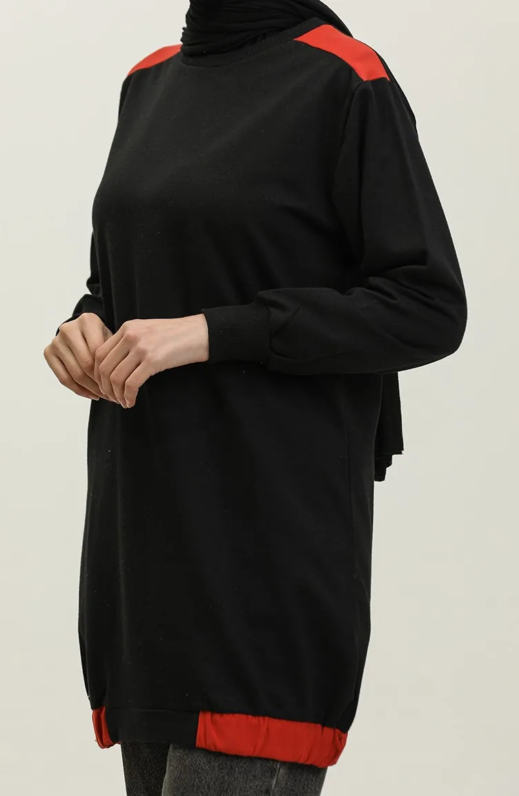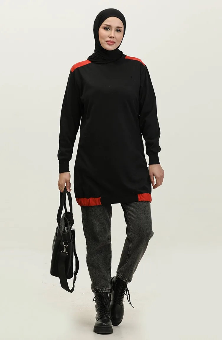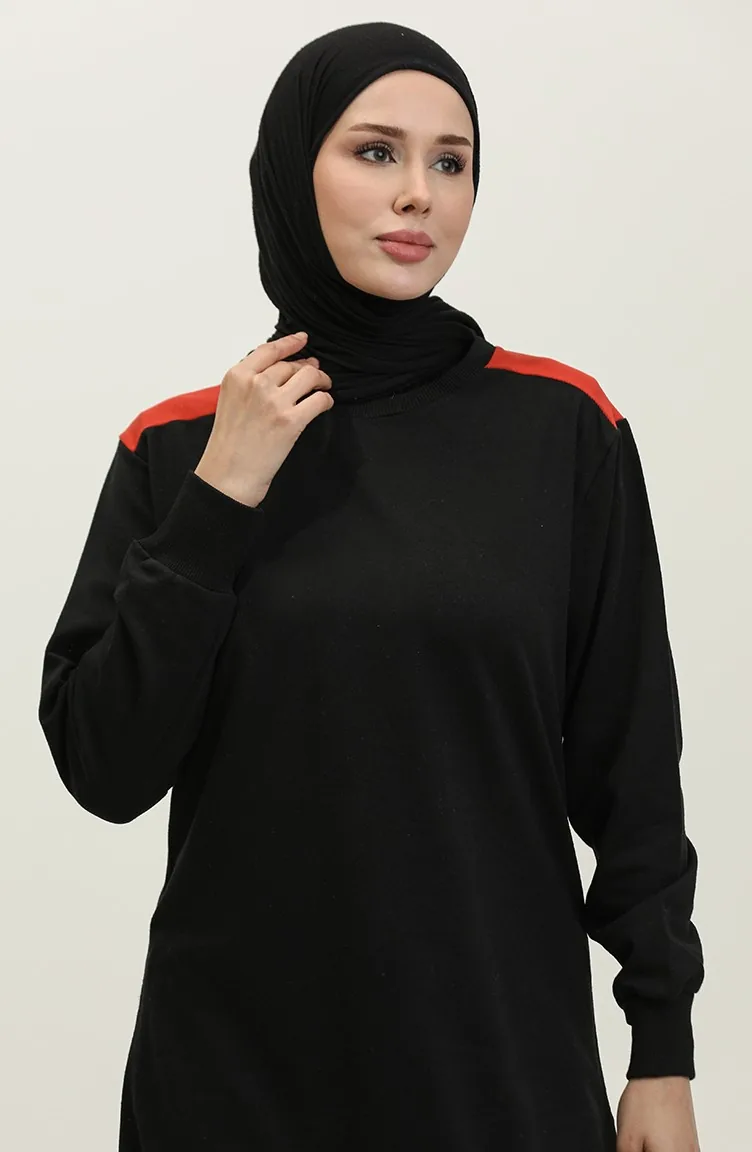 Sıfır Yaka Sweatshirt 23086-03 Kiremit Siyah
